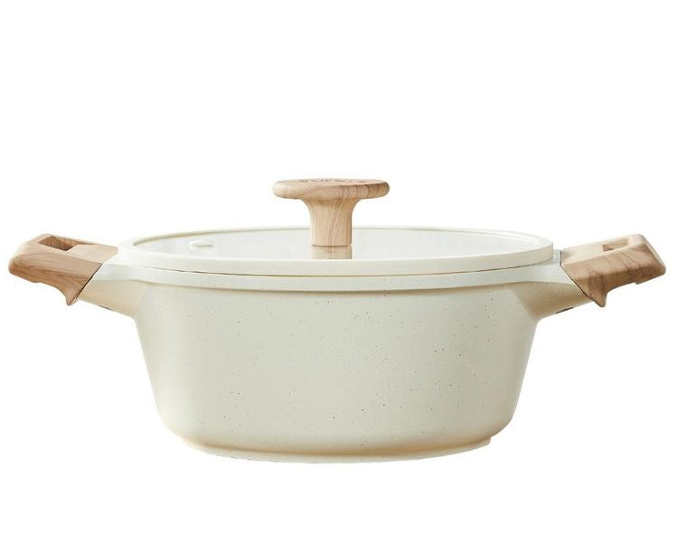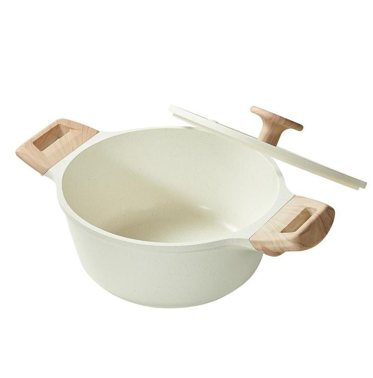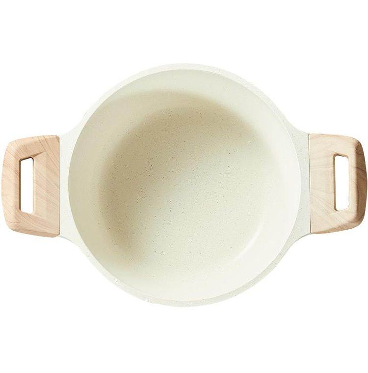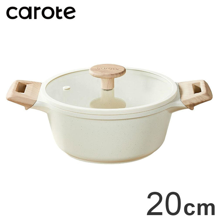 カローテ CAROTE 両手鍋 20cm ガラス蓋セット キャセロール IH対応 PFOAフリー IH ガス火対応 ガラス蓋付 ふっ素加工 コーティング お手入れ簡単 アイボリー NM-5011 COSY-ICE かわいい