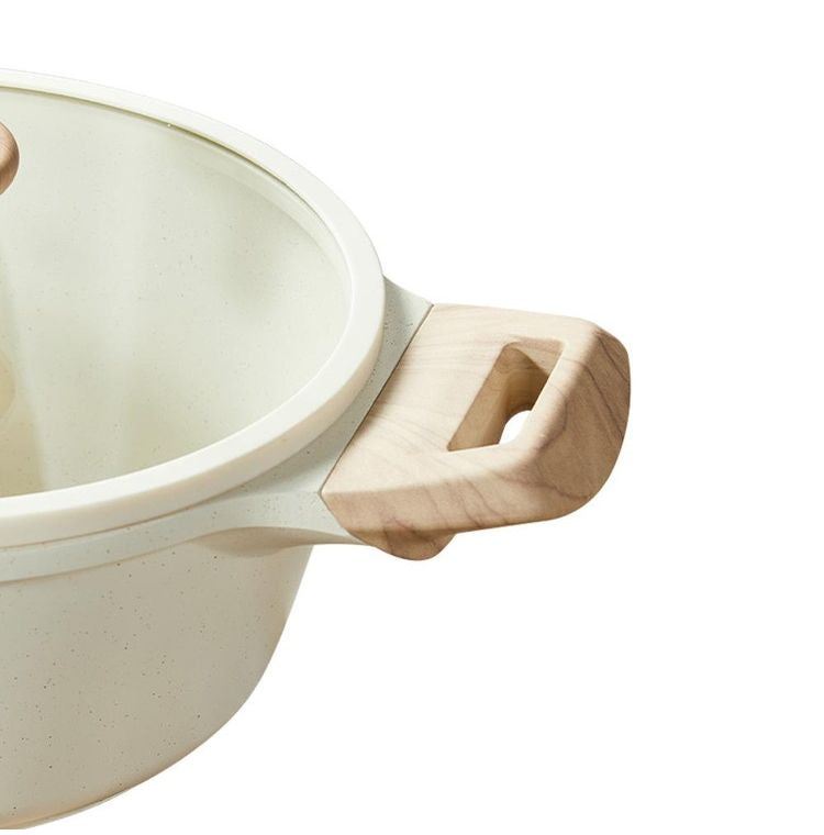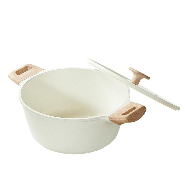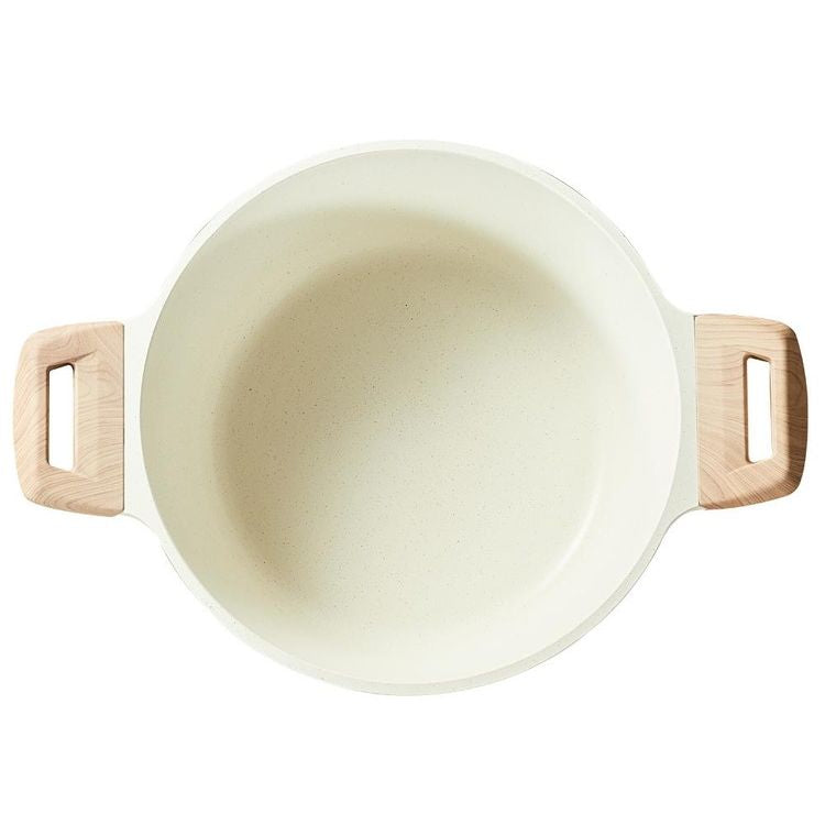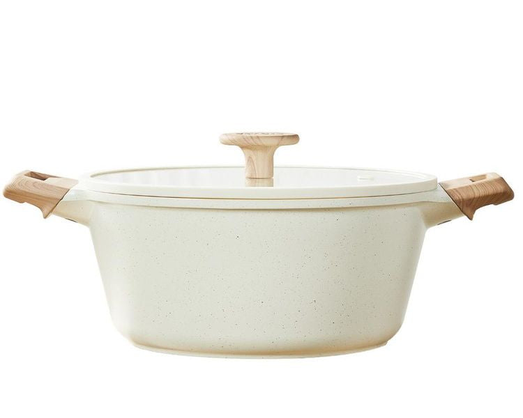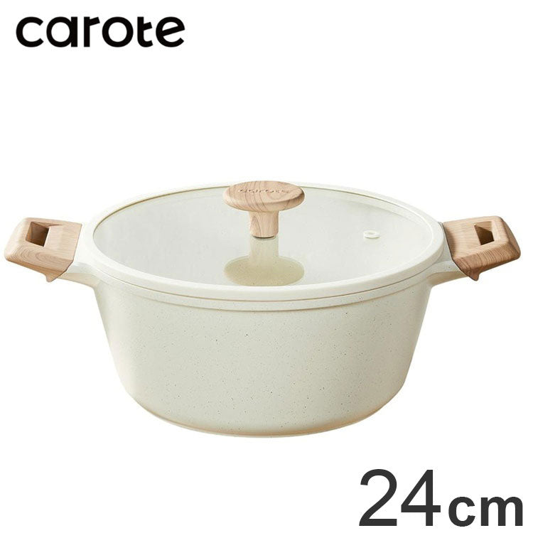カローテ CAROTE 両手鍋 24cm ガラス蓋セット キャセロール IH対応 PFOAフリー IH ガス火対応 ガラス蓋付 ふっ素加工 コーティング お手入れ簡単 アイボリー NM-5012 COSY-ICE かわいい