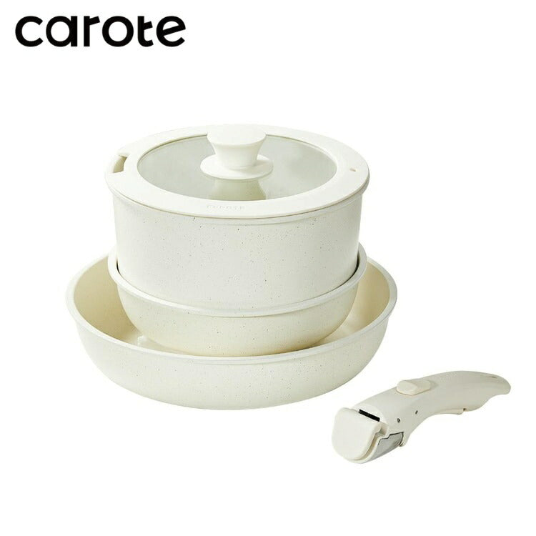 カローテ CAROTE 取っ手が取れる ハンドル着脱式 フライパン 5点セット 20cm 26cm ポット 20cm ガラス蓋 IH対応 PFOAフリー IH対応 PFOAフリー IH ガス火対応 ふっ素加工 コーティング ICE cream