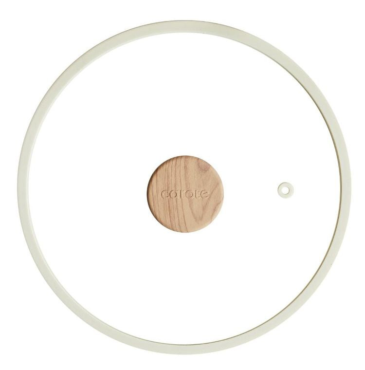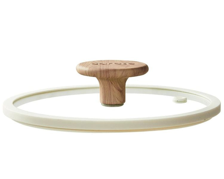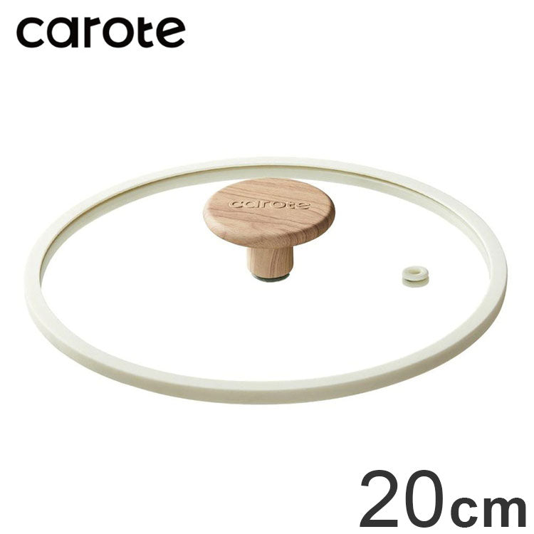 カローテ CAROTE ガラス蓋 20cm シリコーン縁 シリコン 蒸気穴付き 穴 蒸気 蓋 ガラス 中身が見える つまみ 木目調 アイボリー NM-5017 COSY-ICE