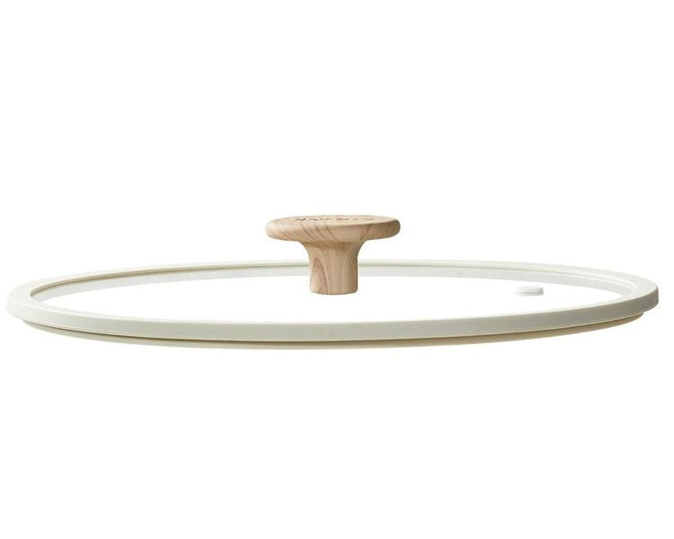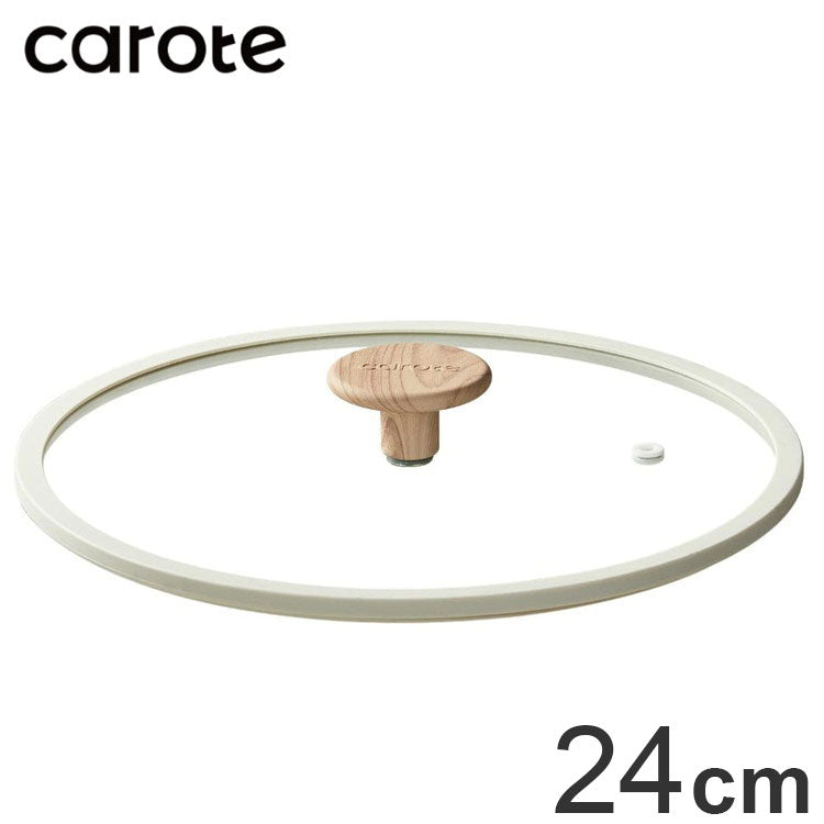 カローテ CAROTE ガラス蓋 24cm シリコーン縁 シリコン 蒸気穴付き 穴 蒸気 蓋 ガラス 中身が見える つまみ 木目調 アイボリー NM-5018 COSY-ICE