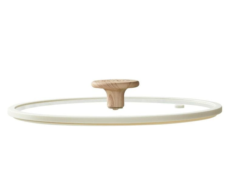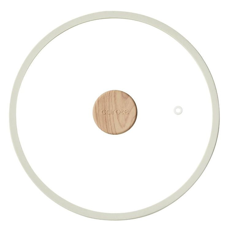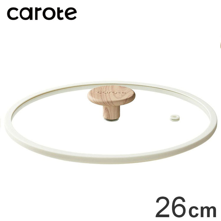 カローテ CAROTE ガラス蓋 26cm シリコーン縁 シリコン 蒸気穴付き 穴 蒸気 蓋 ガラス 中身が見える つまみ 木目調 アイボリー NM-5019 COSY-ICE