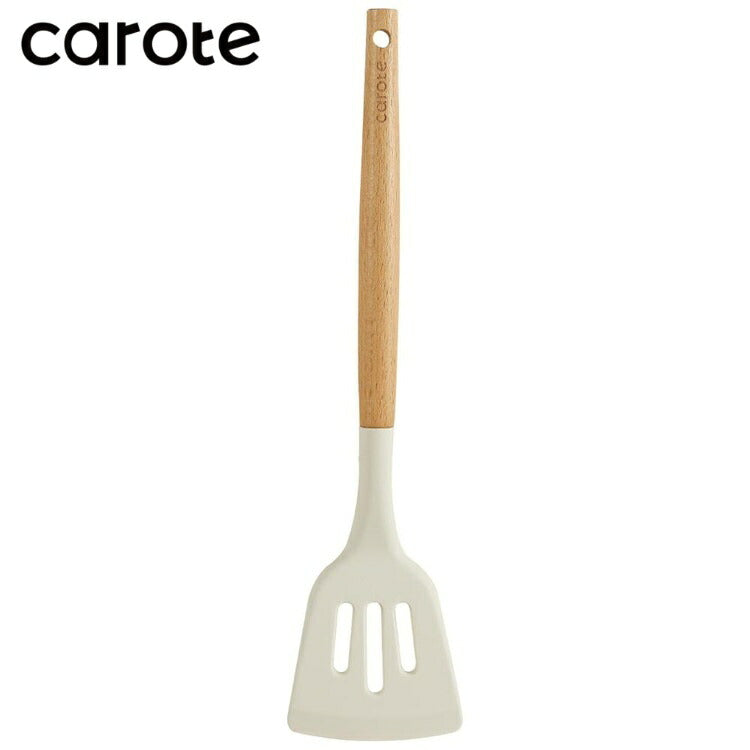 カローテ CAROTE 穴あきターナー 穴あきフライ返し ビーター 調理へら シリコン アイボリー ホワイト 木製 木柄 かわいい 耐熱 シンプル おしゃれ 使いやすい キッチンツール NM-5041