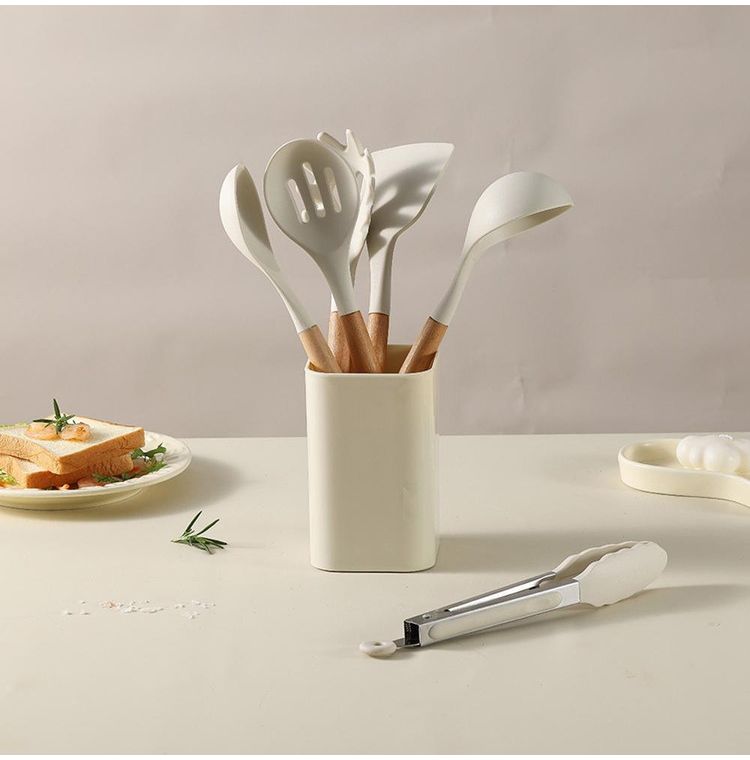 カローテ CAROTE 調理用スプーン へら スプーン型 クッキングスプーン シリコン 耐熱 アイボリー ホワイト 木製 木柄 かわいい シンプル おしゃれ 使いやすい キッチンツール NM-5042