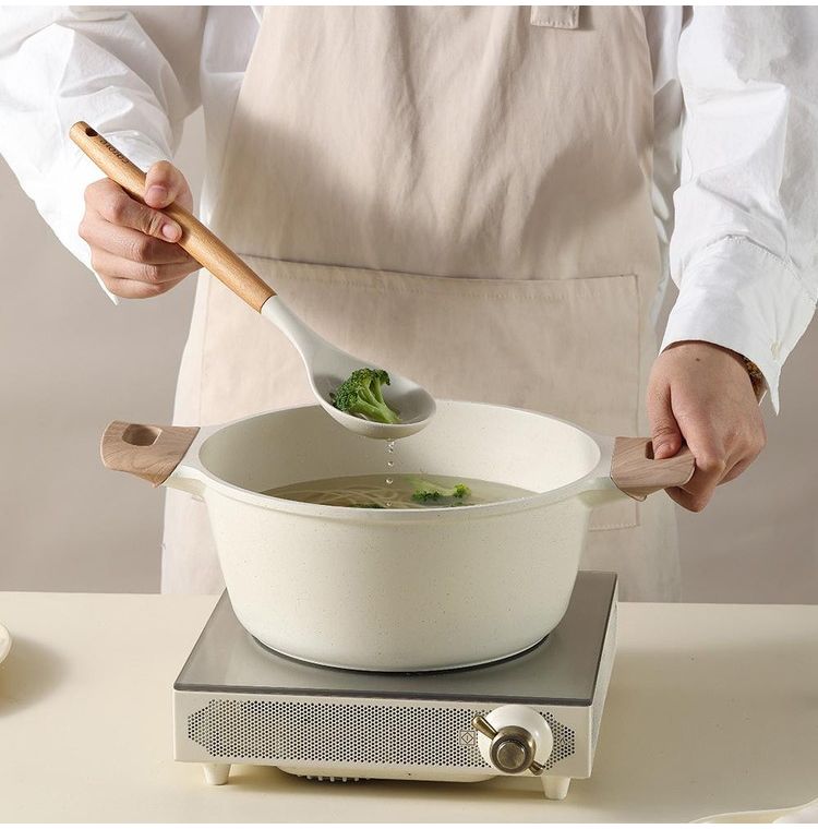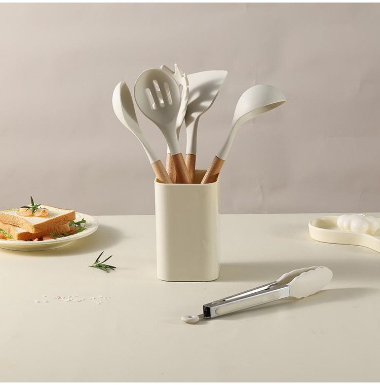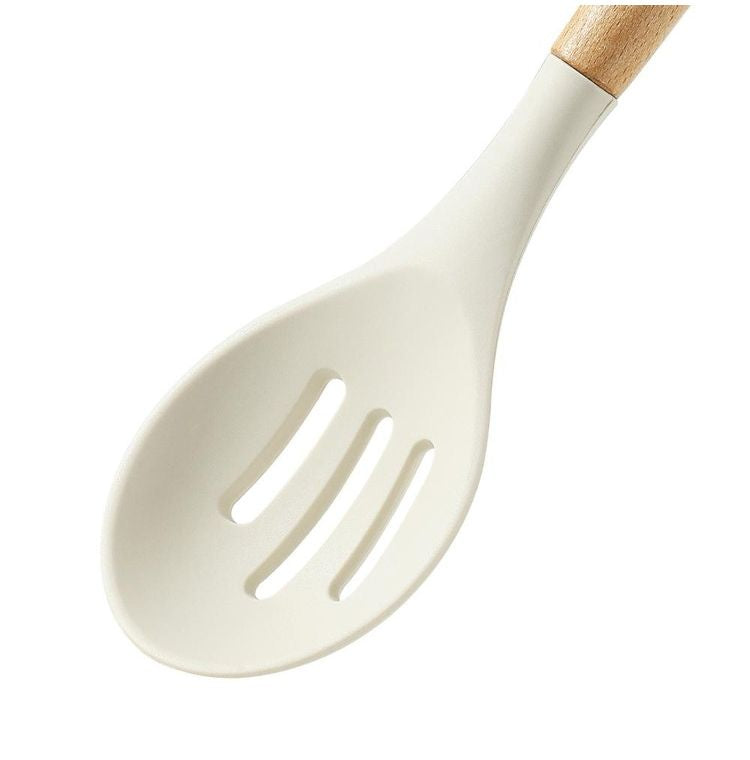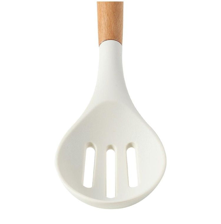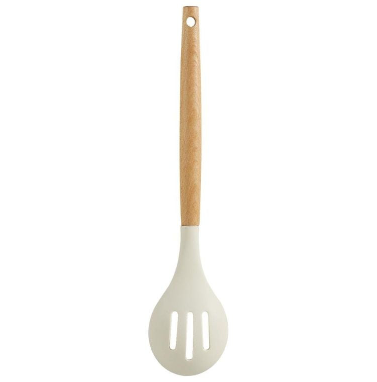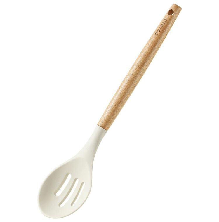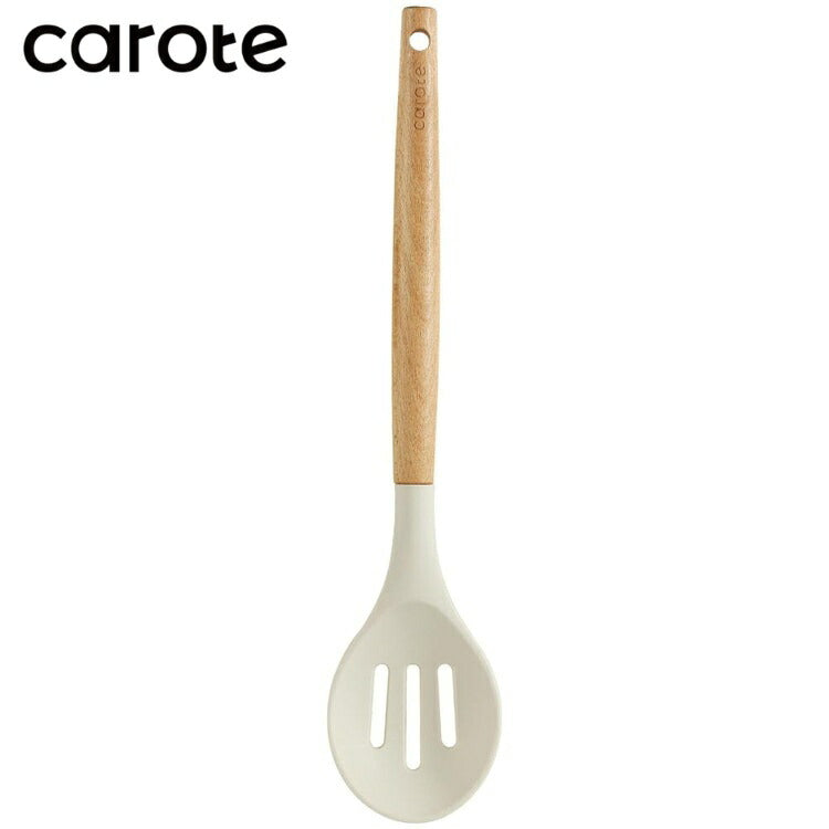 カローテ CAROTE 穴あきスプーン 調理用スプーン へら スプーン型 シリコン 耐熱 アイボリー ホワイト 木製 木柄 かわいい シンプル おしゃれ 使いやすい キッチンツール NM-5046