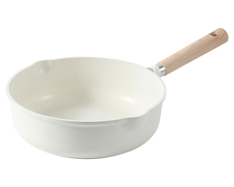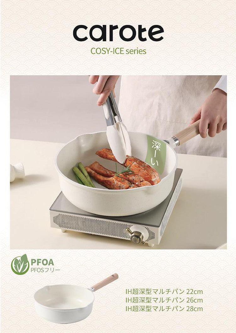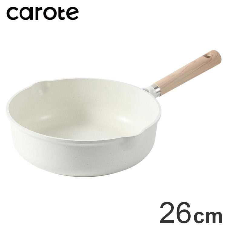 カローテ CAROTE フライパン IH対応 PFOAフリー 深型 26cm ディープパン マルチ IH ガス火対応 ふっ素加工 コーティング 注ぎ口付き お手入れ簡単 超深型 マルチパン アイボリー NM-5052 COSY-ICE