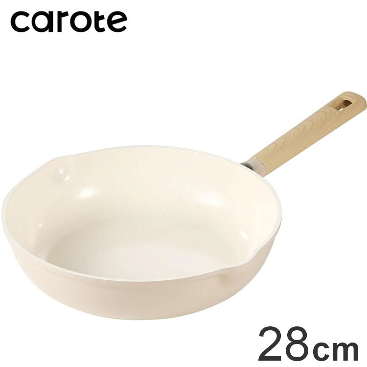 カローテ CAROTE 深型フライパン 28cm ふっ素不使用 IH対応 PFOAフリー IH ガス火対応 セラミック 注ぎ口付き 洗いやすい 握りやすい 深型 ディープパン ミルクティー NM-5084 COSY-ICE
