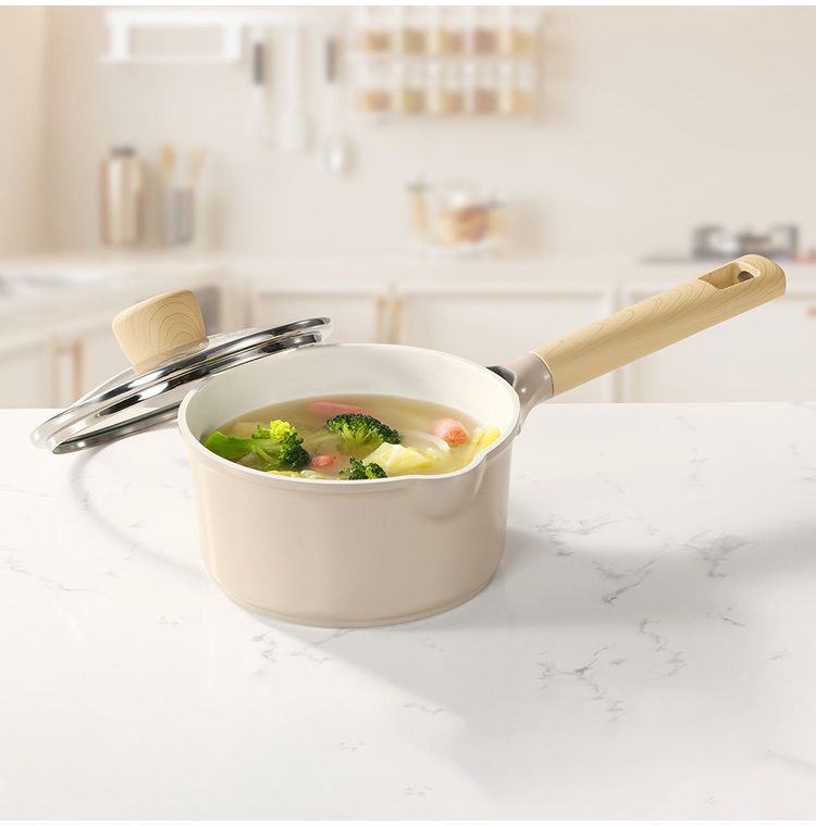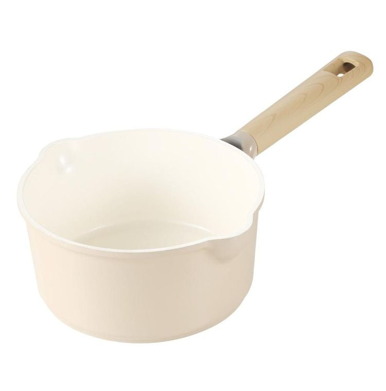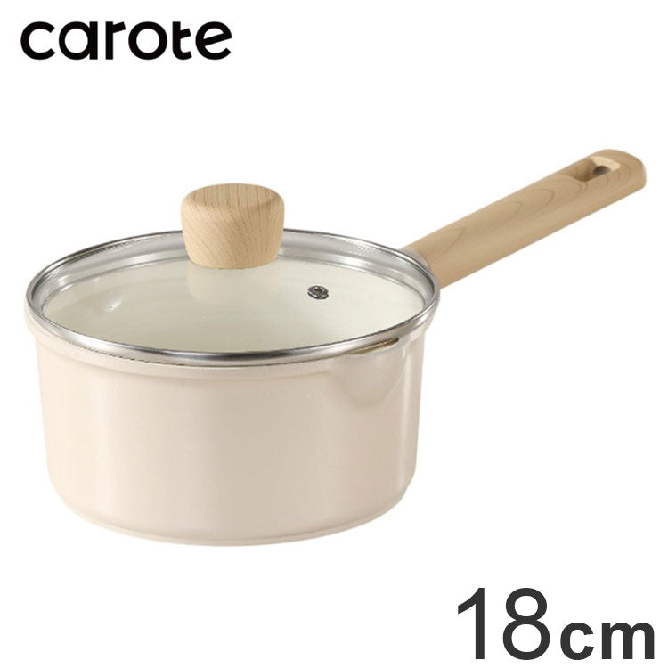 カローテ CAROTE 片手鍋 18cm ソースパン ふっ素不使用 IH対応 PFOAフリー IH ガス火対応 ガラス蓋付き 注ぎ口付き 洗いやすい 握りやすい ミルクティー NM-5092 COSY-ICE