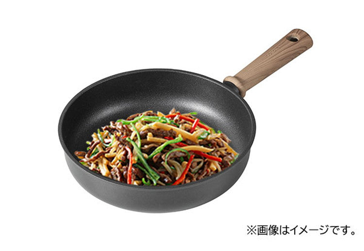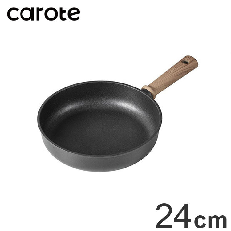 カローテ CAROTE フライパン 深型 24cm IH対応 PFOAフリー ディープパン IH ガス火対応 木目調 木目 チタンコーティング チタン 注ぎ口付きお手入れ簡単 ブラック NM-5101