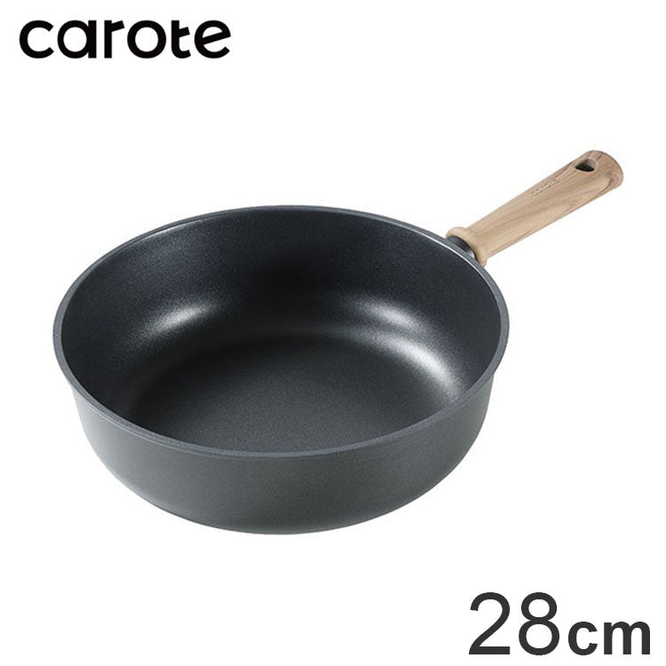 カローテ CAROTE 超深型 フライパン マルチパン 28cm IH対応 PFOAフリー IH ガス火対応 木目調 木目 チタンコーティング チタン ブラック NM-5105