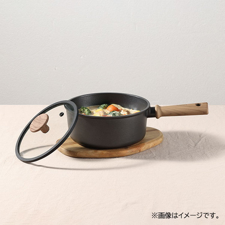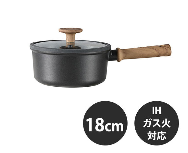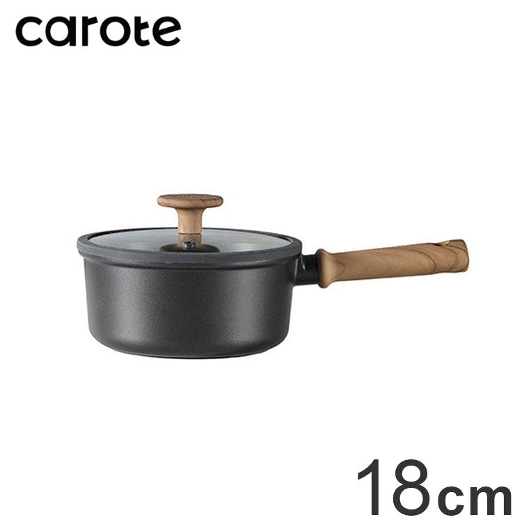 カローテ CAROTE 片手鍋 ソースパン 18cm IH対応 PFOAフリー IH ガス火対応 木目調 木目 チタンコーティング チタン ガラス蓋付 ブラック NM-5107