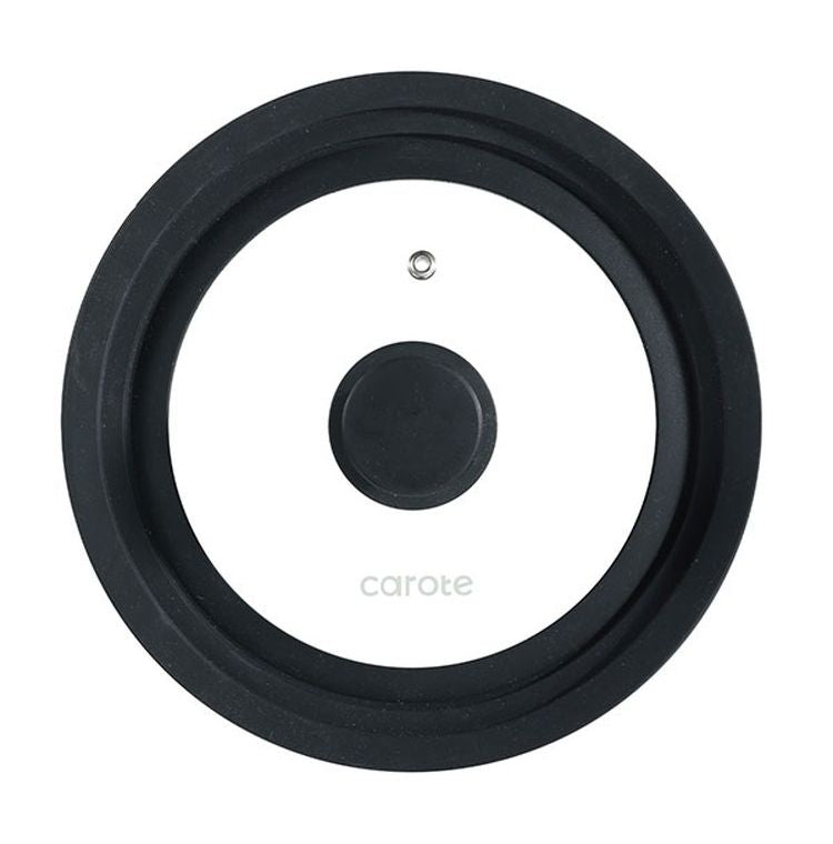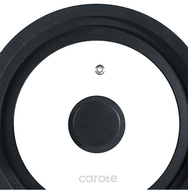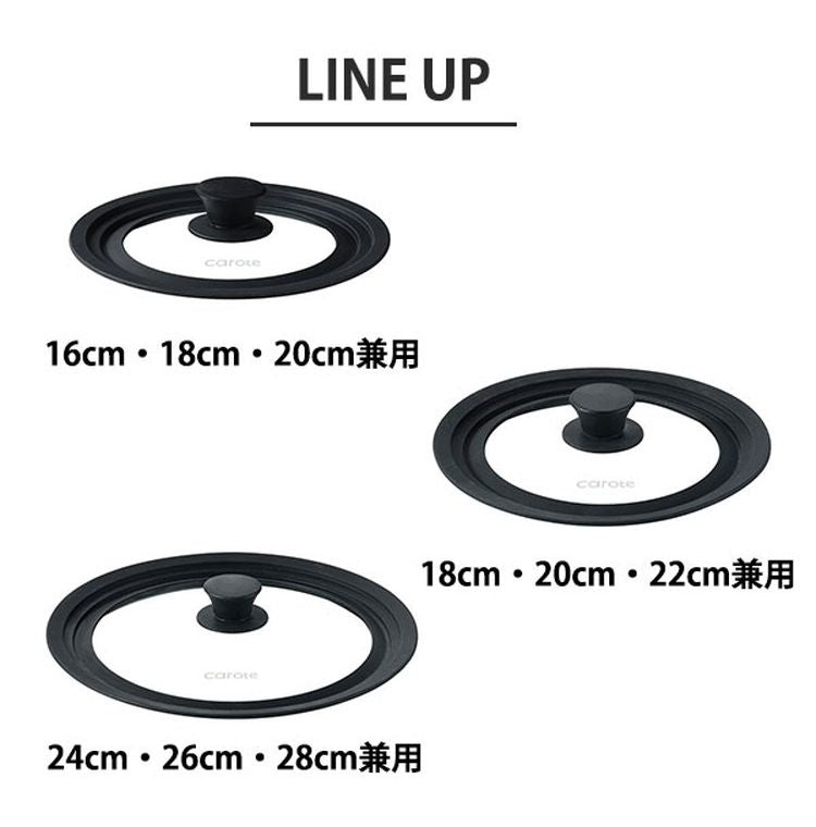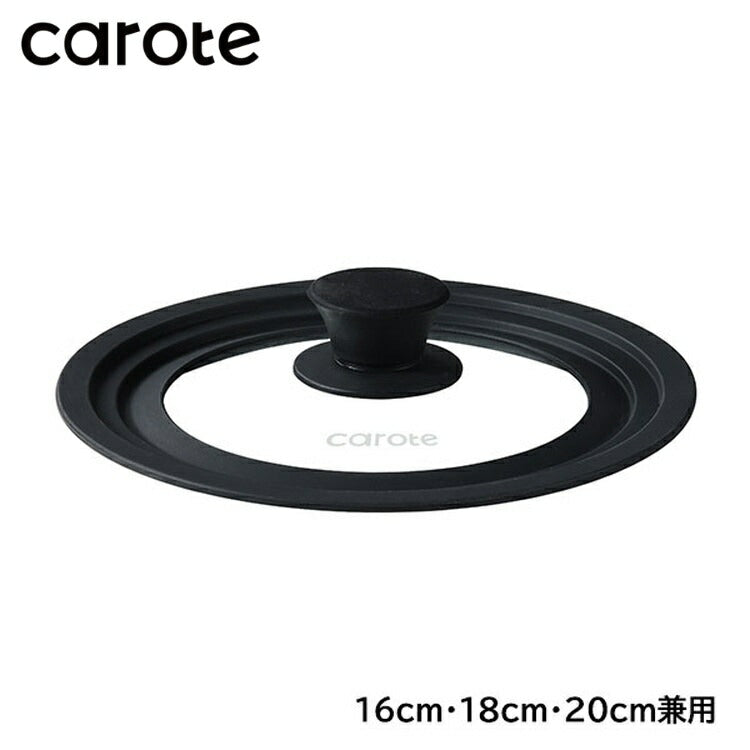 カローテ CAROTE ガラス蓋 16cm 18cm 20cm 兼用 兼用蓋 パンカバー シリコン ガラス 中身が見える ガラス窓 シリコーン縁 ブラック NM-5111
