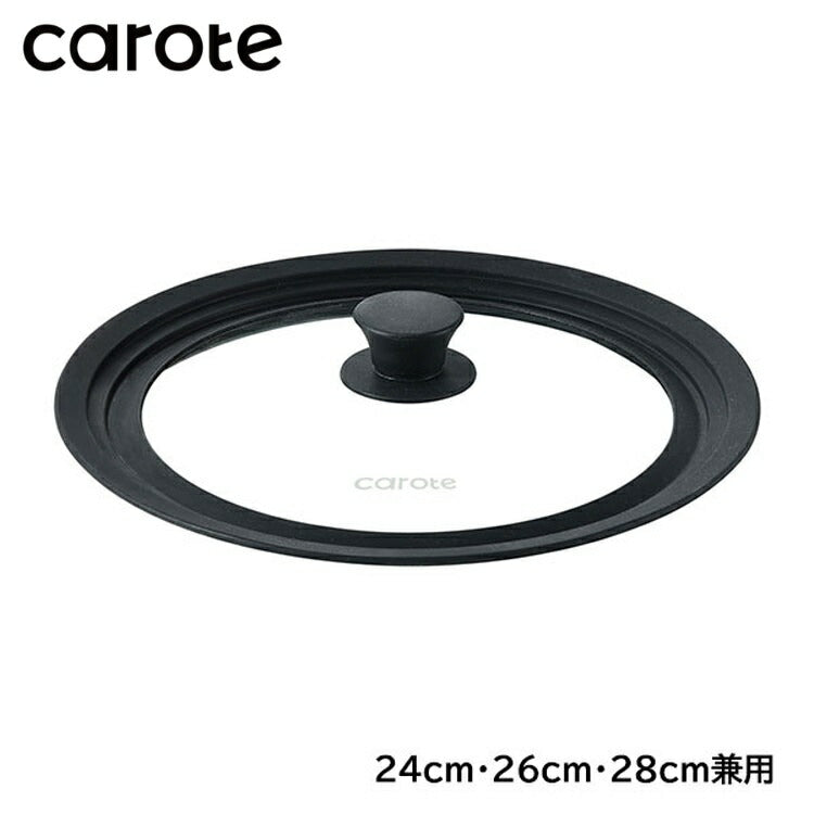 カローテ CAROTE ガラス蓋 24cm 26cm 28cm 兼用 兼用蓋 パンカバー シリコン ガラス 中身が見える ガラス窓 シリコーン縁 ブラック NM-5113