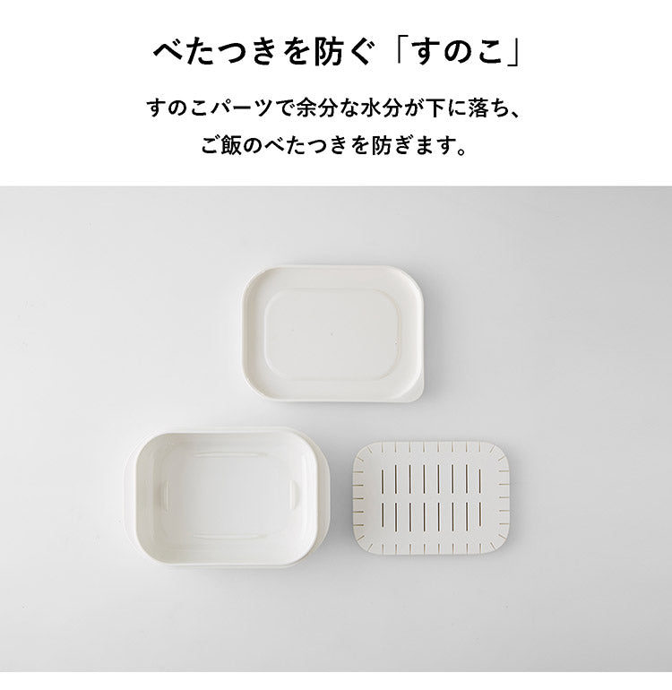 ■すのこパーツで余分な水分が下に落ち、ご飯のべたつきを防ぎます。