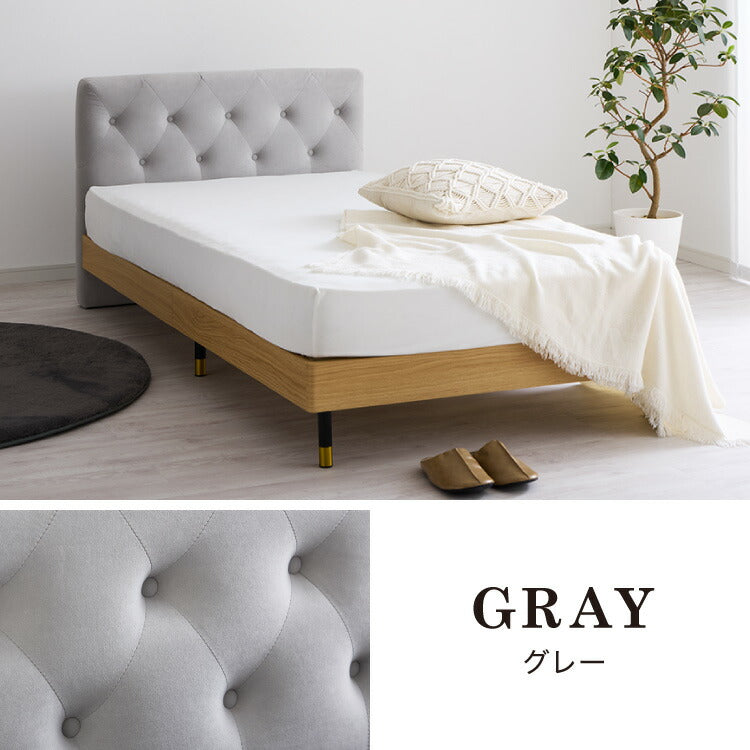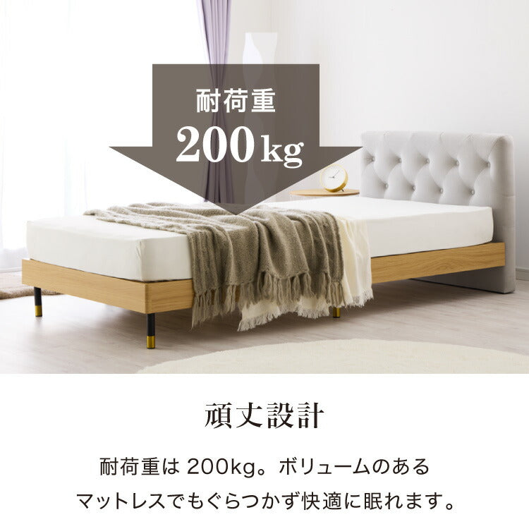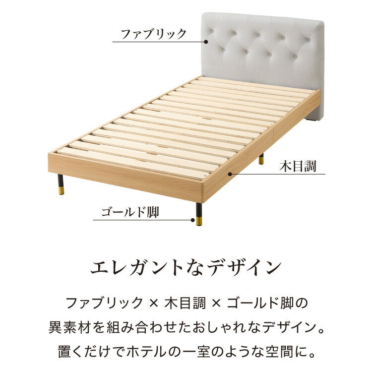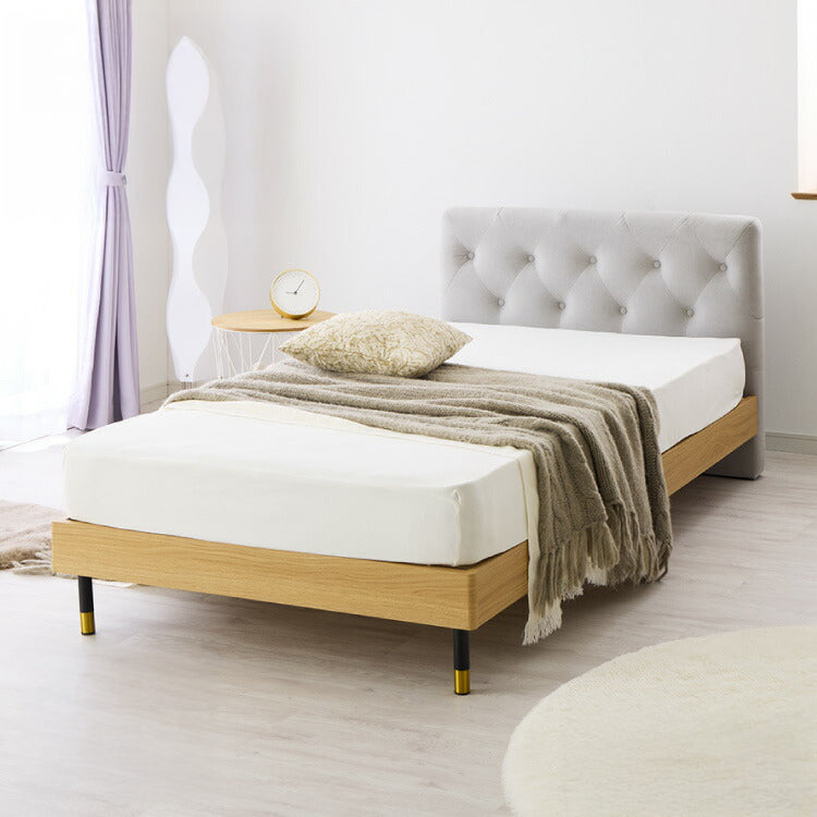 【セット販売】ベッドフレーム ポケットコイルマットレス シングル 背もたれ ファブリック おしゃれ 韓国インテリア 高級感 かわいい すのこ フレーム ローベッド グレー 脚付き 木目調 オーク