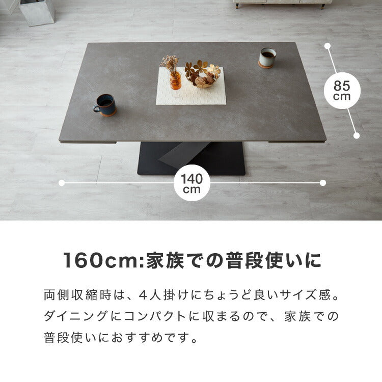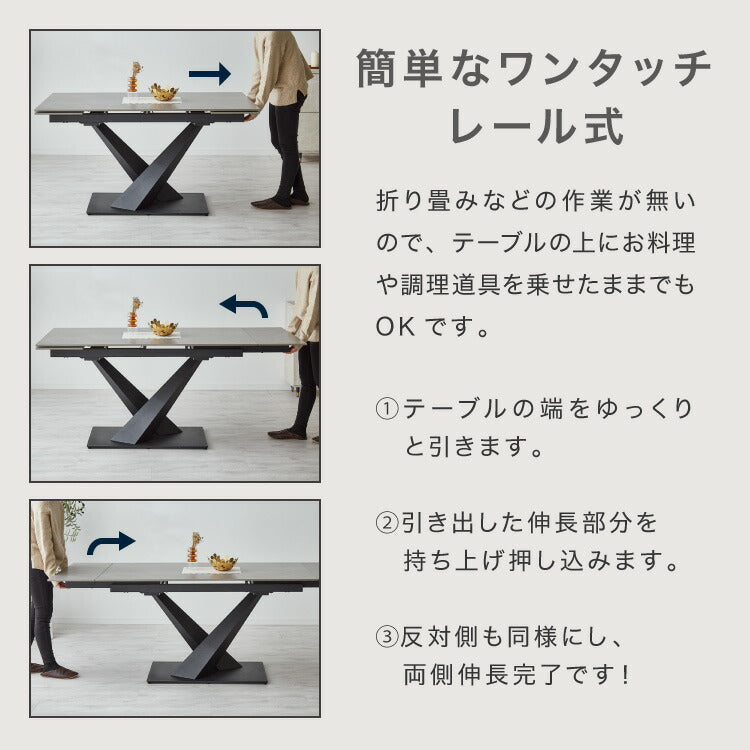 セラミック天板トップの存在感のある両側伸長ダイニングテーブル