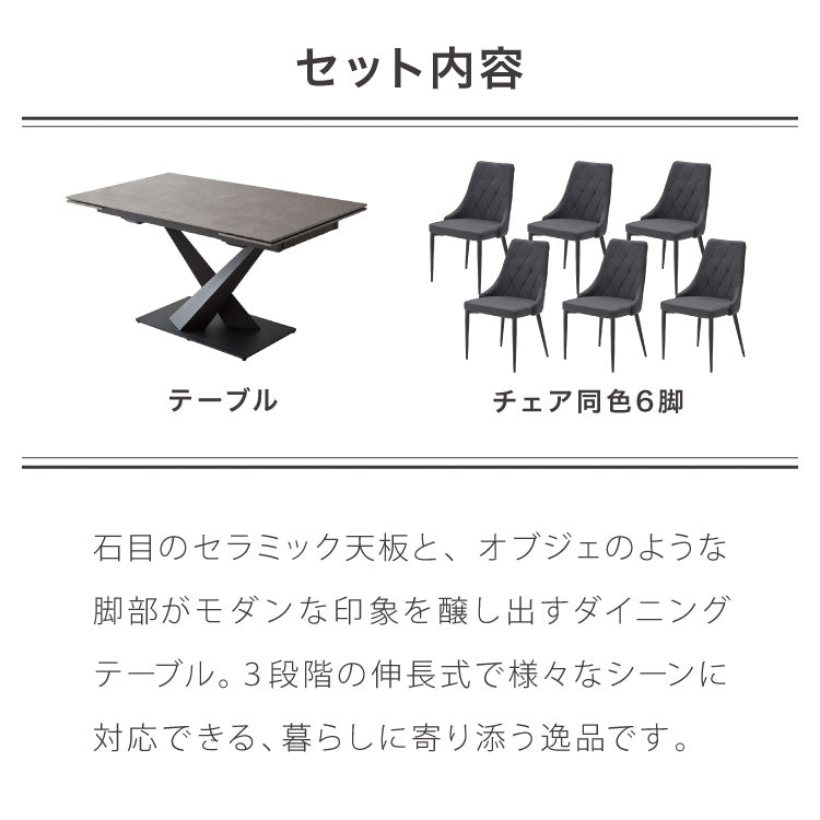 セラミック 両側伸長式ダイニングテーブルセット 幅140~200 伸縮 ダイニング7点セット 4人掛け 6人掛け 伸縮テーブル モダン 伸長式 ダイニング 耐水 耐熱 白 艶消し 傷がつきにくい おしゃれ(代引不可)