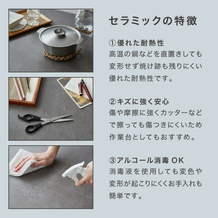 傷がつきにくく、熱に強い、厚さ12mmのセラミック天板。