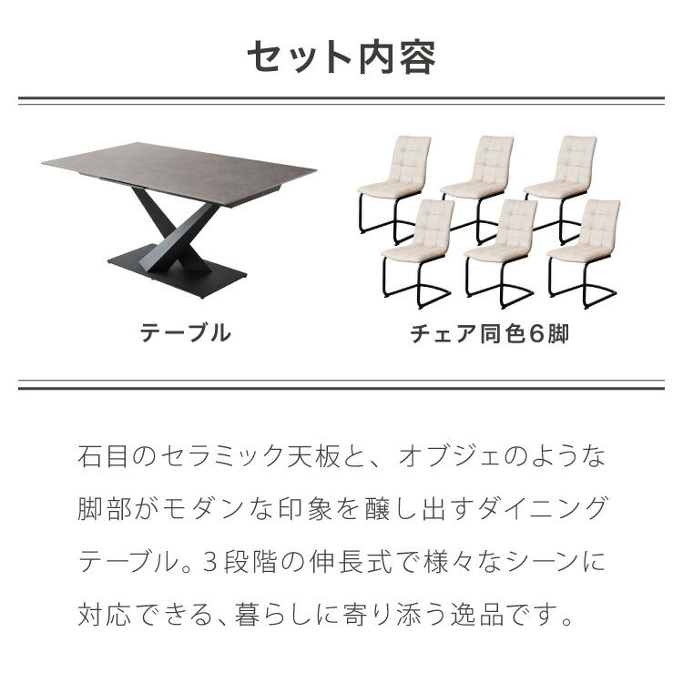 セラミック 両側伸長式ダイニングテーブルセット 幅140~200 伸縮 ダイニング7点セット 4人掛け 6人掛け 伸縮テーブル モダン 伸長式 ダイニング 耐水 耐熱 白 艶消し 傷がつきにくい おしゃれ(代引不可)