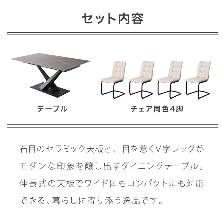 セラミック 伸長式ダイニングテーブルセット 幅160~200 伸縮 ダイニング5点セット 4人掛け 伸縮テーブル モダン 伸長式 ダイニング 耐水 耐熱 白 艶消し 傷がつきにくい おしゃれ(代引不可)