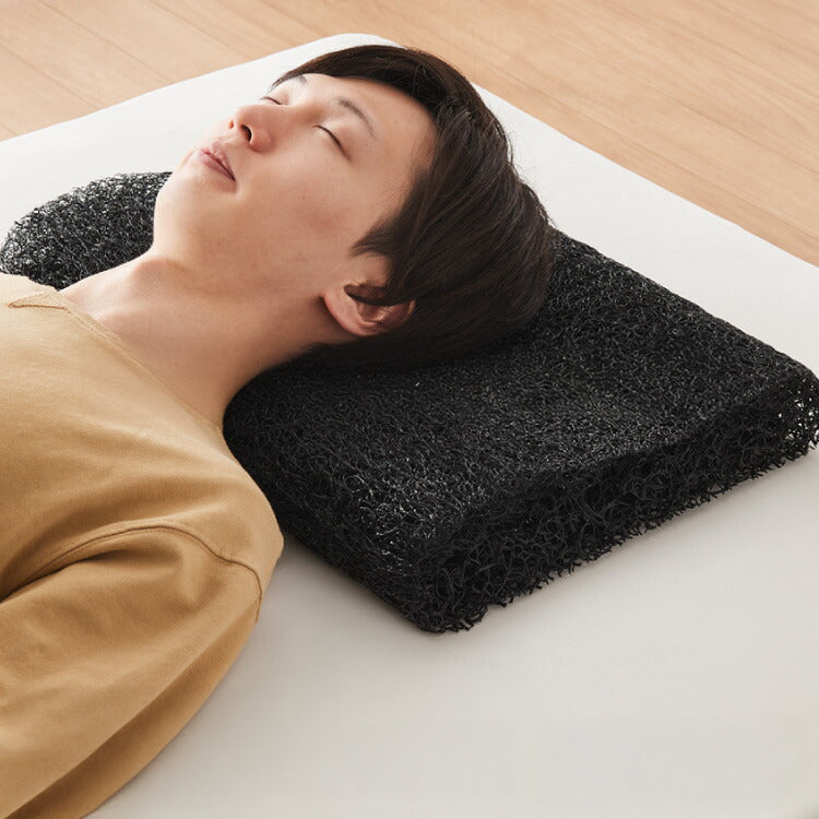 中材に3次元立体構造の樹脂ファイバー素材を使用したまくら。