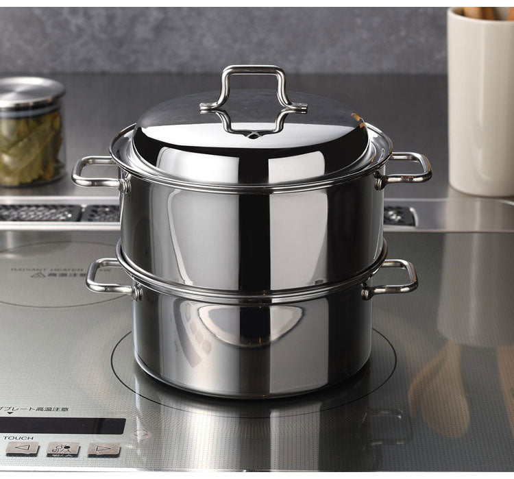 オークス スチームポット 蒸し器 17cm 日本製 燕三条 ステンレス2段蒸し器 IH対応 ガス火対応 せいろ オールステンレス ステンレス鍋 お手入れ簡単 スタッキング コンパクト収納 蒸篭 蒸し野菜