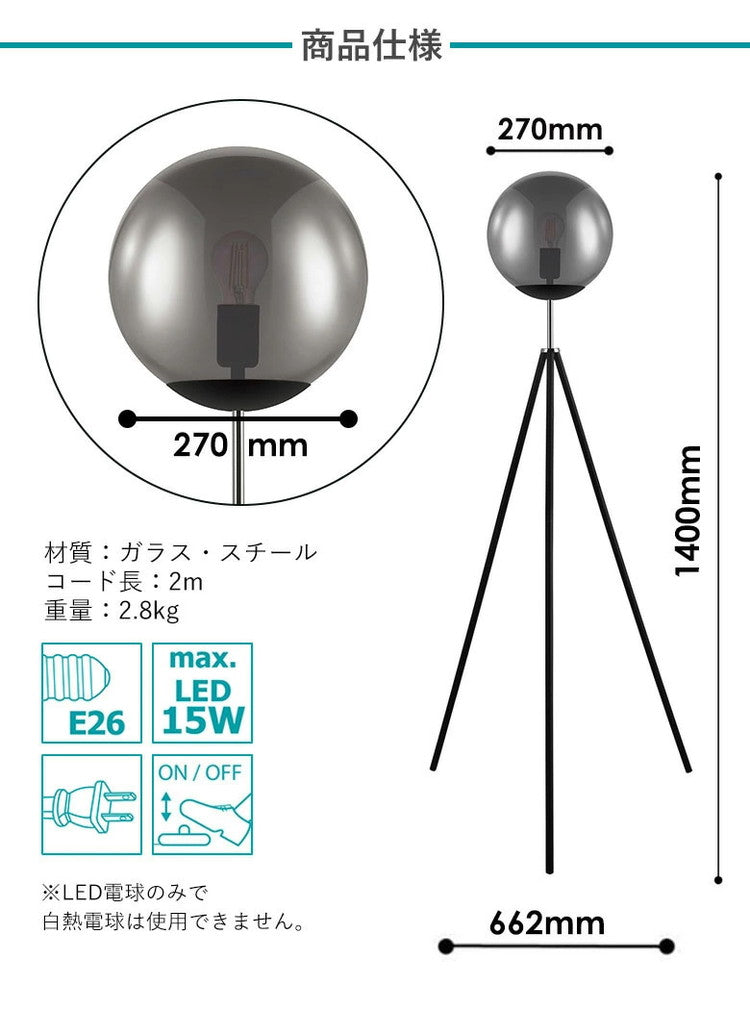 商品サイズ:シェード:Φ270mm (スモークガラス)