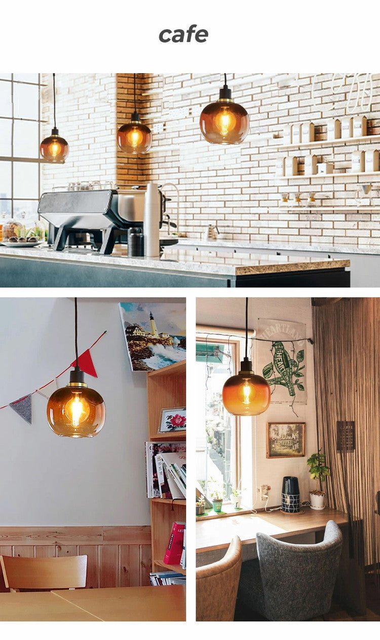 宇宙空間をイメージした球体のガラスシェードに、落ち着いた黒とブラウンのグラデーションが魅力の「大人なペンダントライト」。