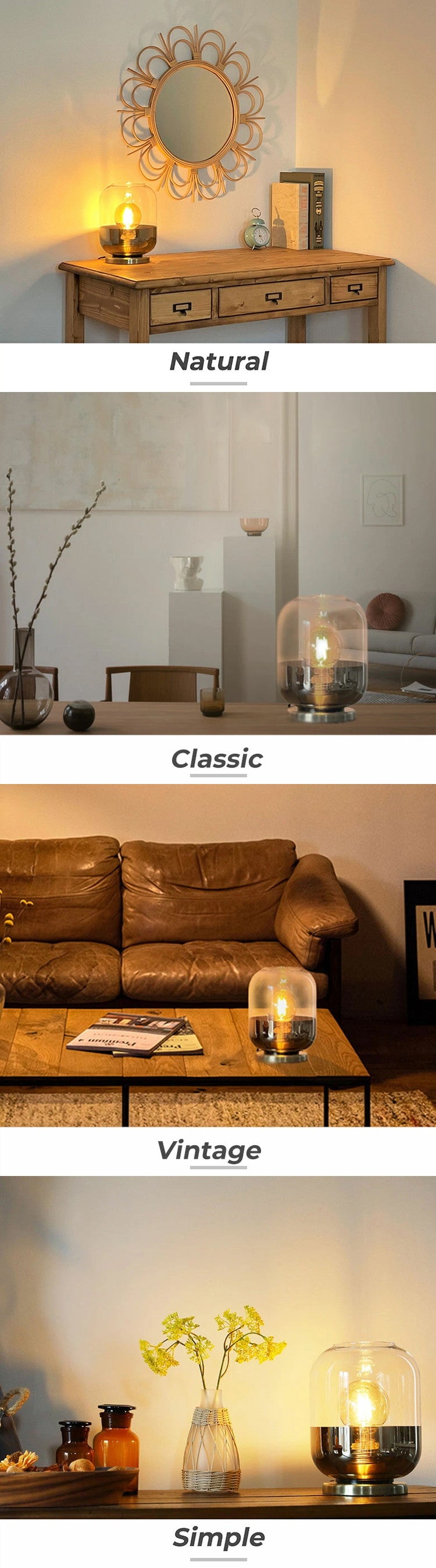 ワークランプや読書灯としてはもちろん、ガラスを通した柔らかい光を、間接照明として使用するのもおすすめです。