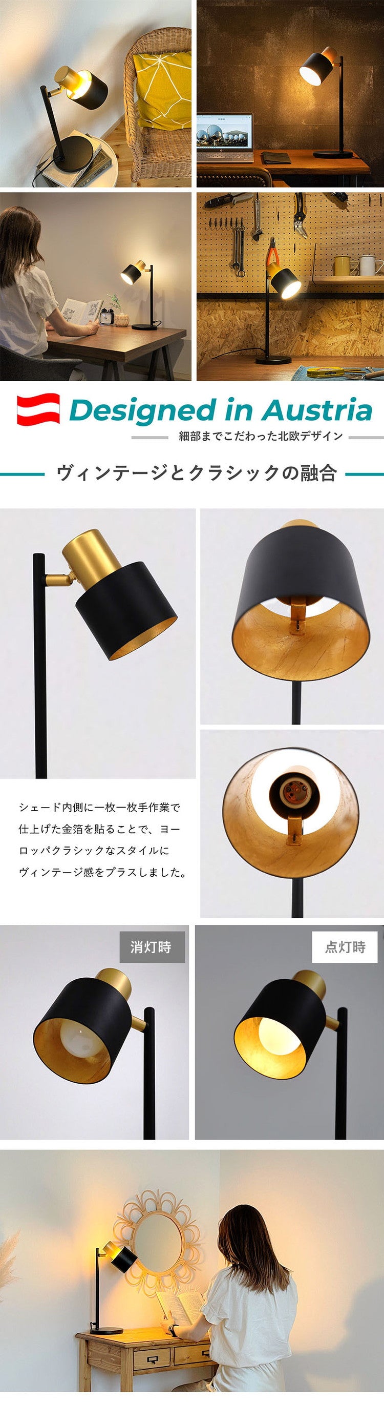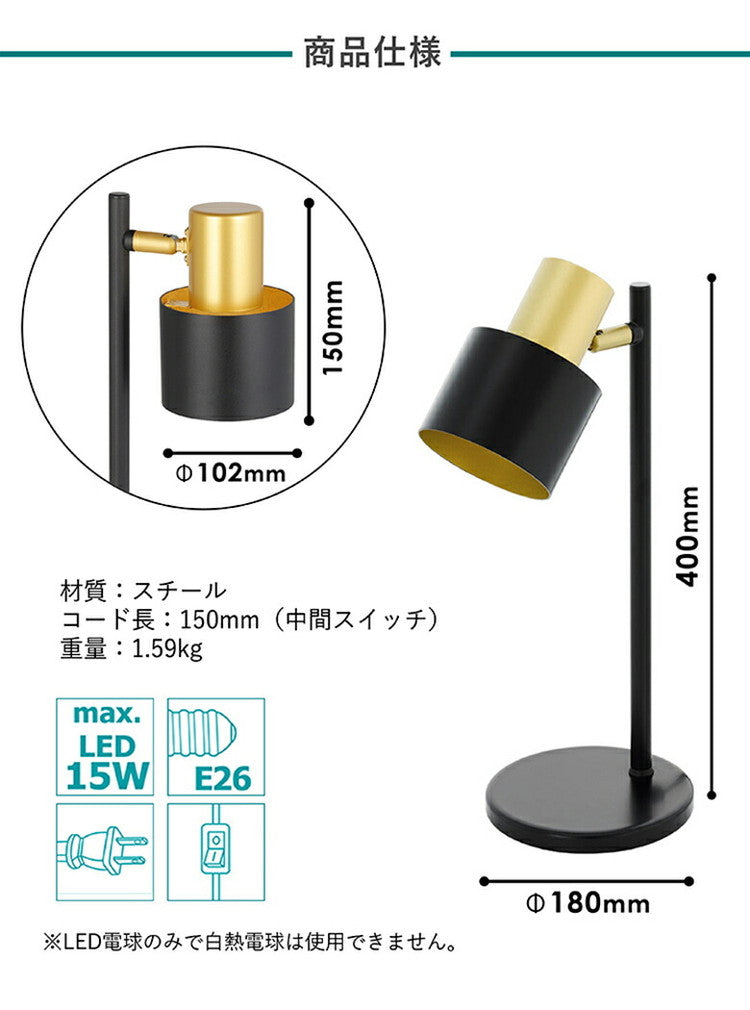 角度調整が可能なシェード部分は実用性にも優れ、インテリアとして、ワークランプや読書灯として、あなただけの心地よい空間を提供します。