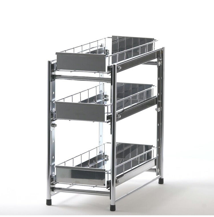 日本製 燕三条 シンク下スライド収納 3段 幅20cm 頑丈ステンレス シンク下 収納 スライド ラック 棚 引出し 引き出し キッチン収納 シンク下スライドラック(代引不可)