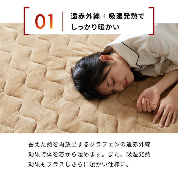 カクシング グラフェン敷きパッド ダブル フランネル 遠赤外線 吸湿発熱 静電気防止 保湿 抗菌防臭 防ダニ 洗える グラフェン おしゃれ とろける 冬 あったか フランネル敷きパッド KAKUSHING