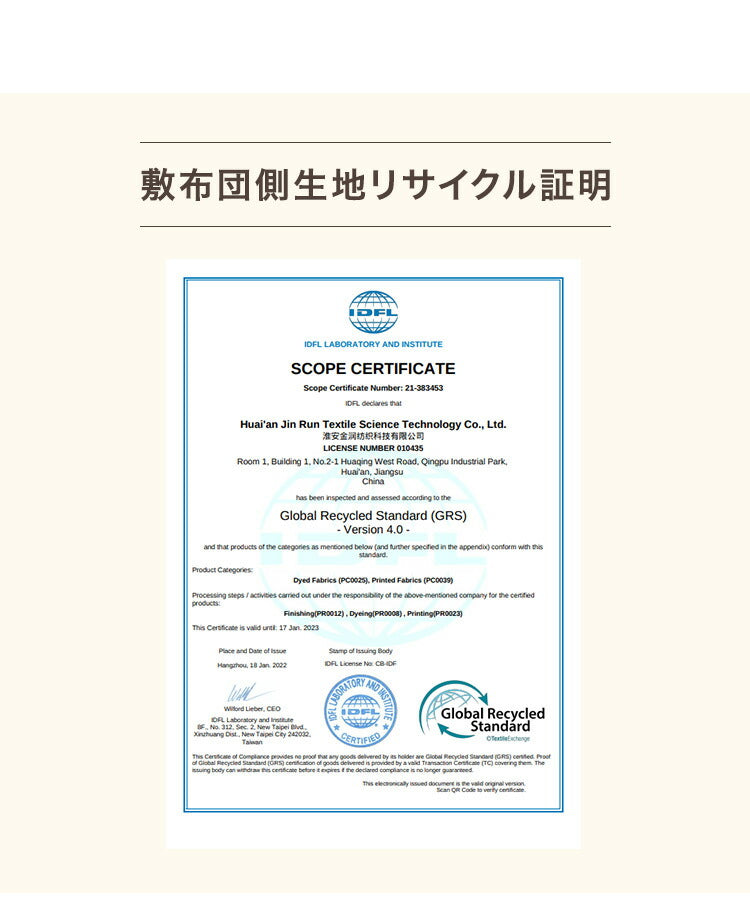 ・地球にやさしいサスティナブルなリサイクルオーガニックコットン布団4点セット