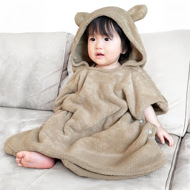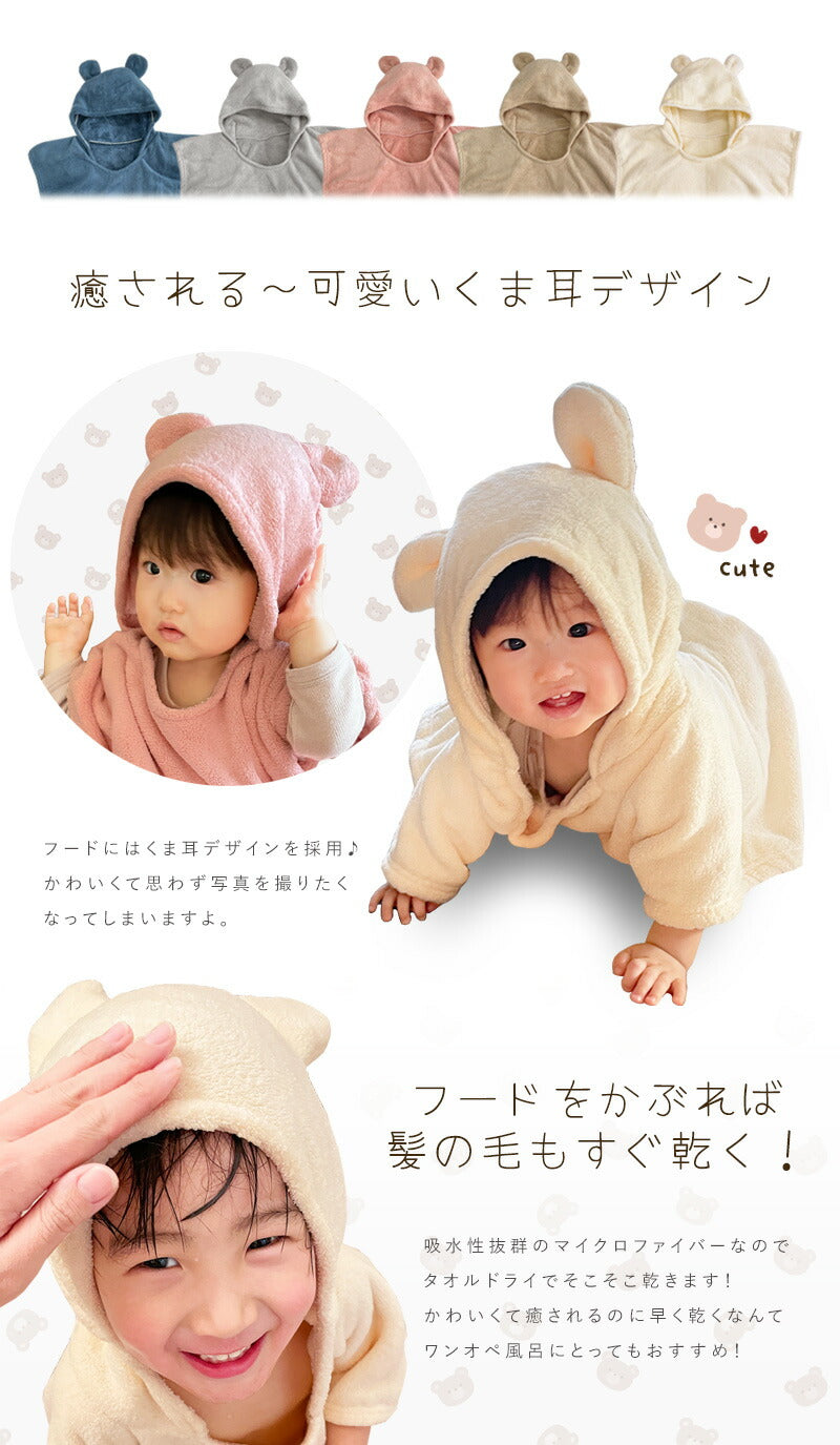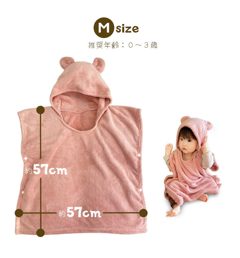 ベビー バスローブ バスポンチョ Mサイズ バスタオル フード付き キッズ ポンチョ キッズバスローブ フード付き 吸水速乾 おくるみ 子供用 パジャマ 赤ちゃん くま くま耳 プール タオル ボタン付き
