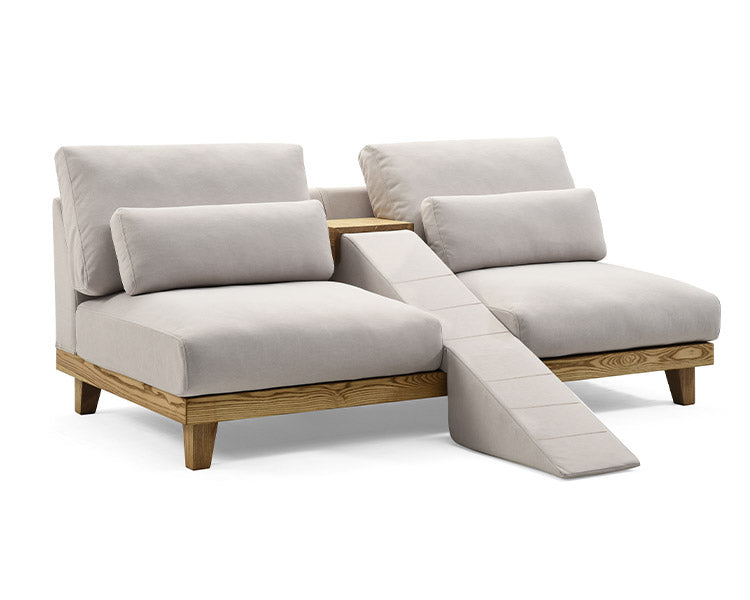 座面と背もたれの組み換えが自在で、柔らかなクッションが心地よい座り心地を提供。