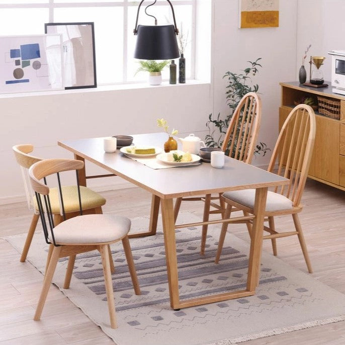 ・メラミン天板とオーク材を使用した北欧テイストのダイニングテーブル。