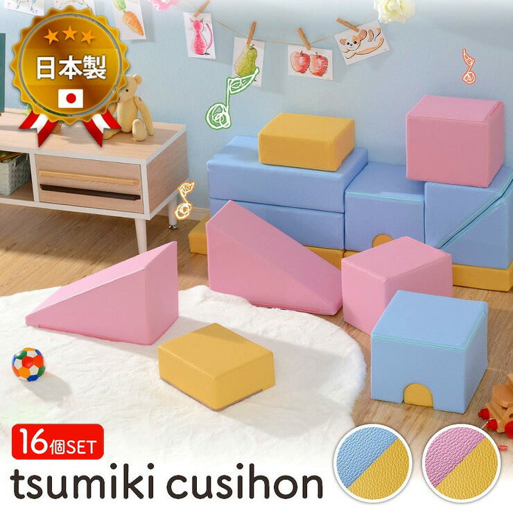 積み木 クッション 16個セット 日本製 ブロック 積み木クッション ベビー キッズ 保育園 託児所 プレイルーム おもちゃ セット(代引不可)