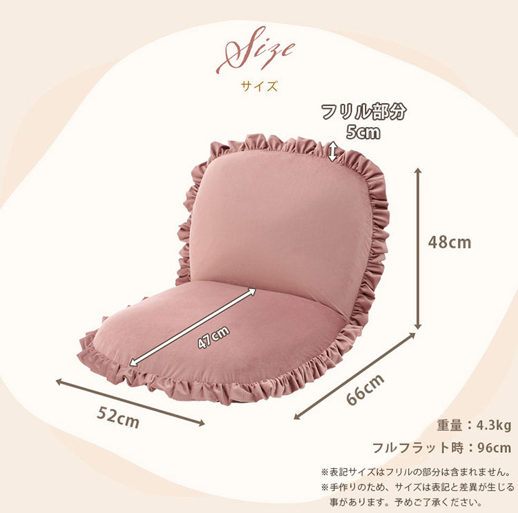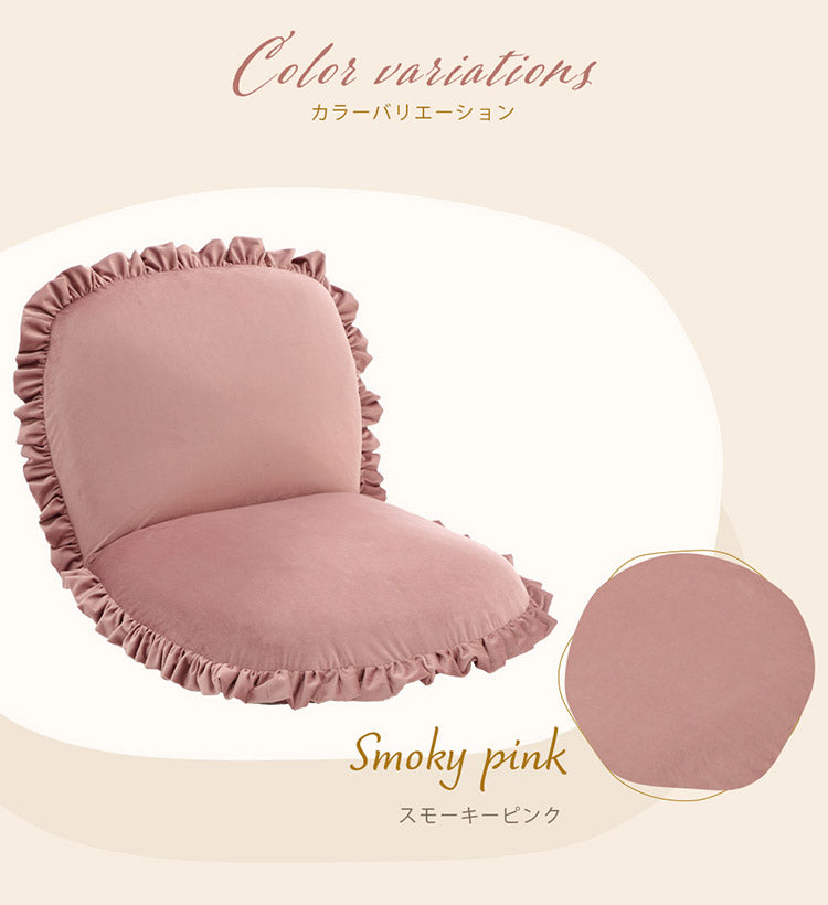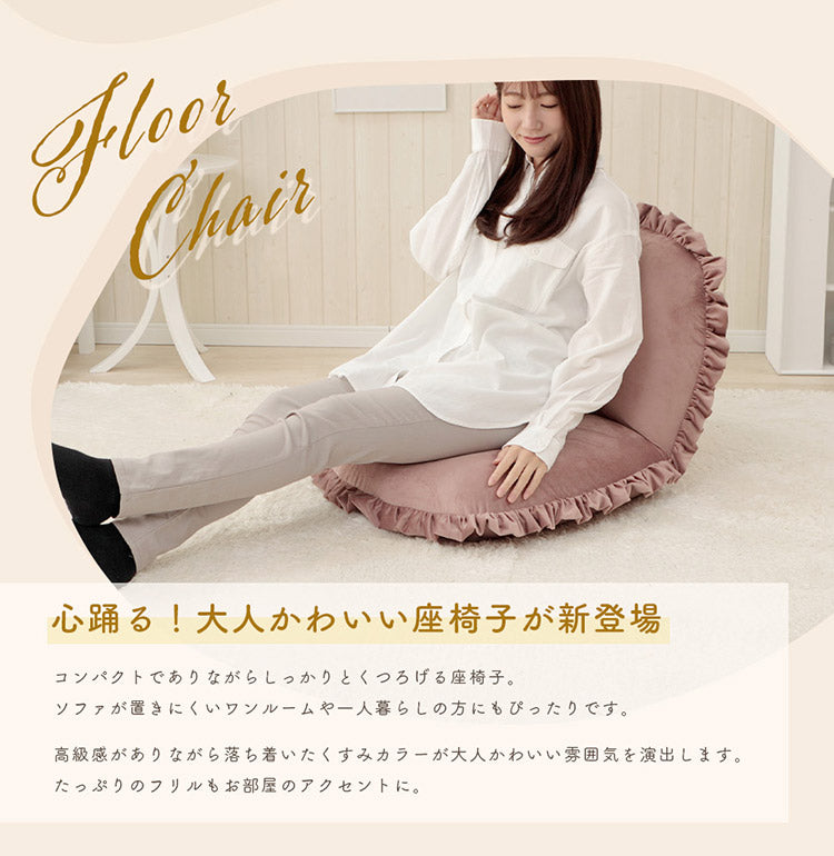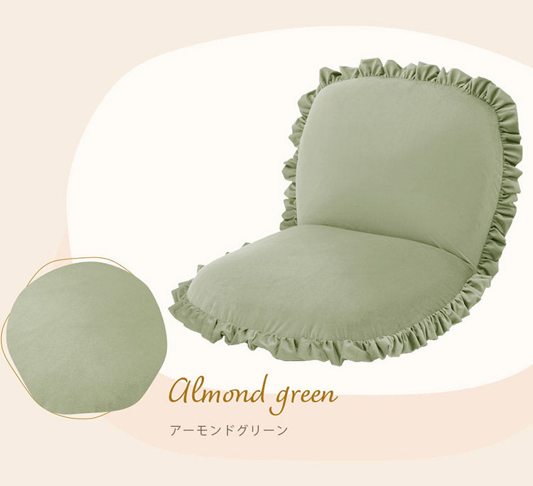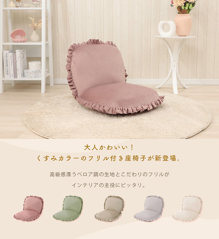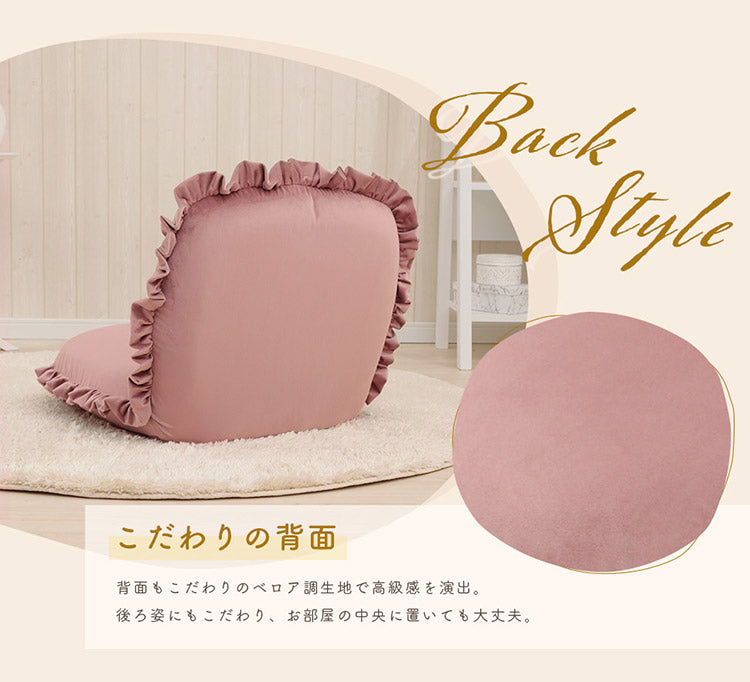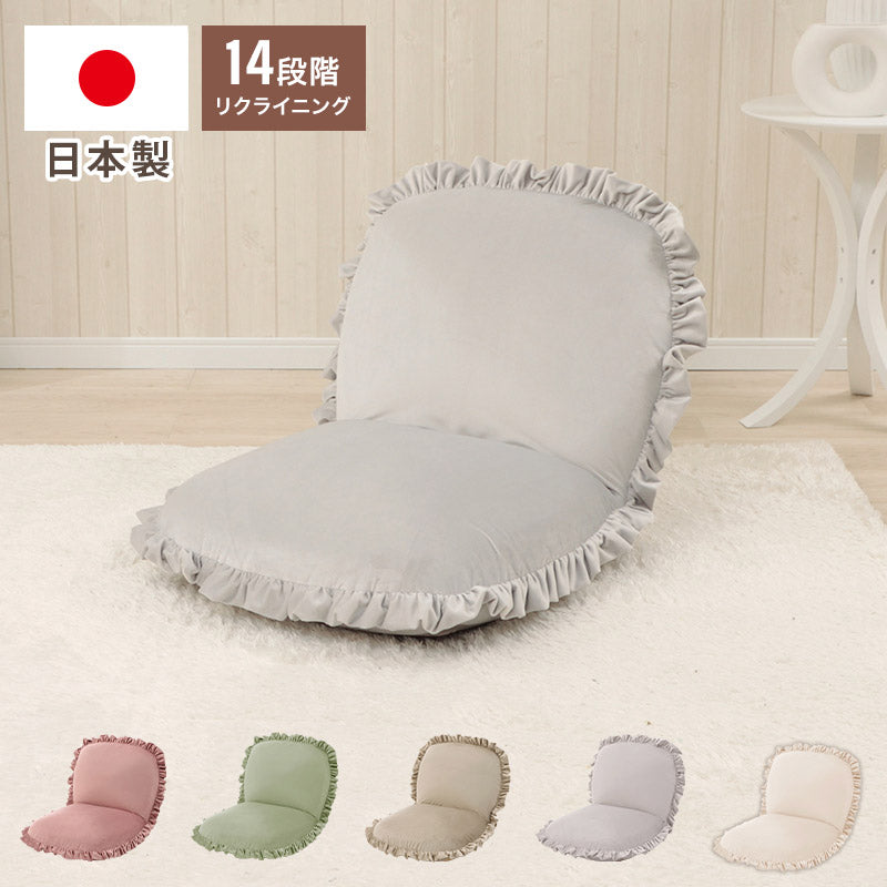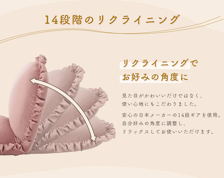 座椅子 14段階 リクライニング 日本製 くすみカラー フリル ベロア 上品 高級感 大人かわいい おしゃれ こたつ ワンルーム 一人暮らし コンパクト 北欧(代引不可)
