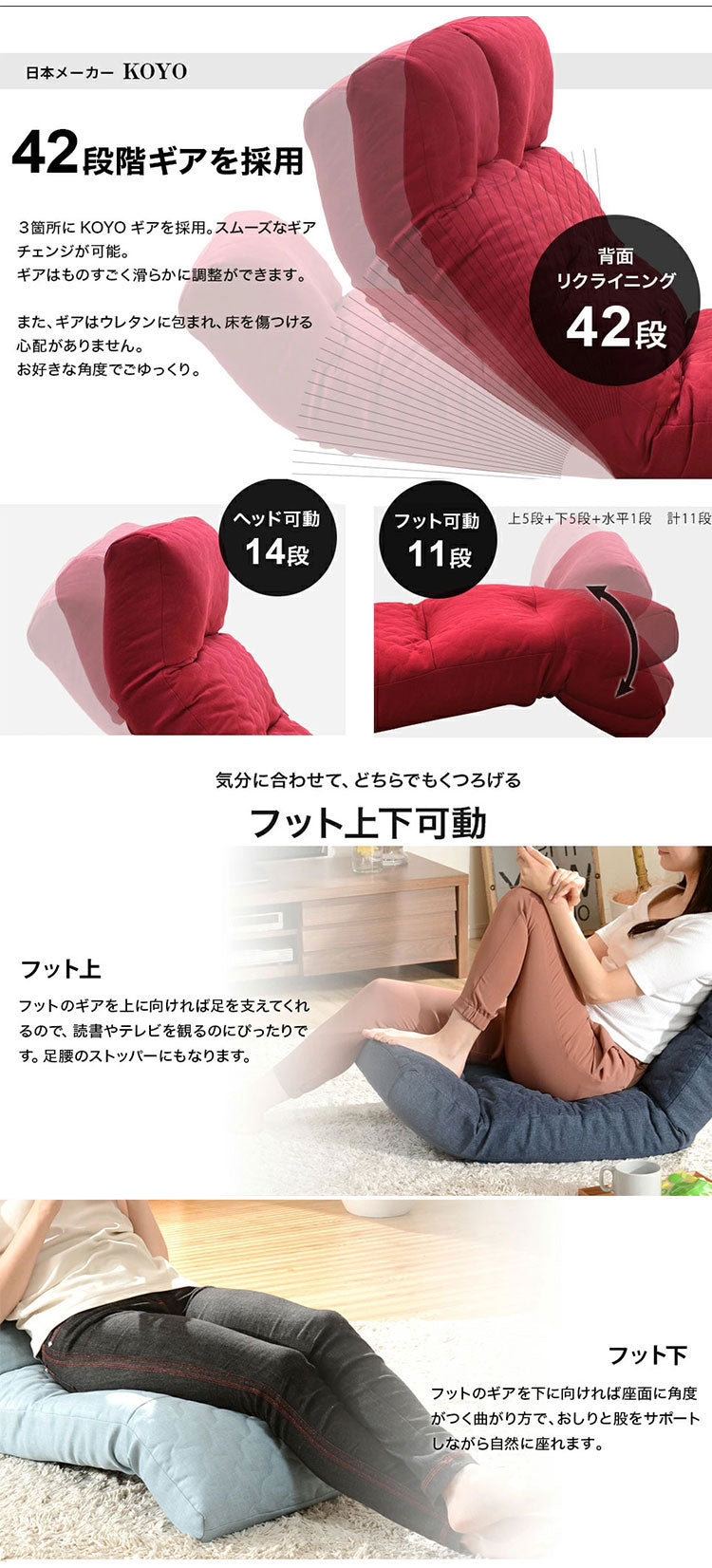 座椅子 選べる14種類 42段階リクライニング ハイバック 日本製 テレワーク 腰痛 コンパクト 姿勢 腰 寝れる 首 作業 デスク 仕事 ローソファー 1人掛け 一人暮らし(代引不可)