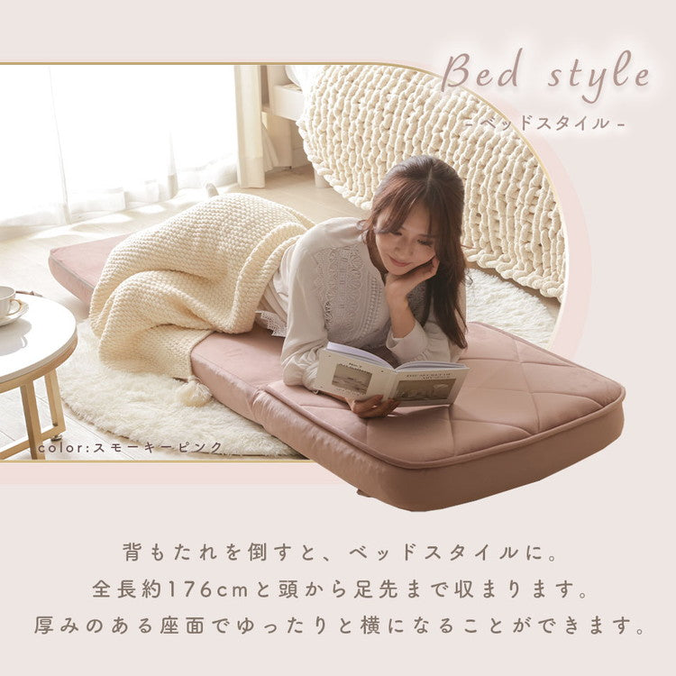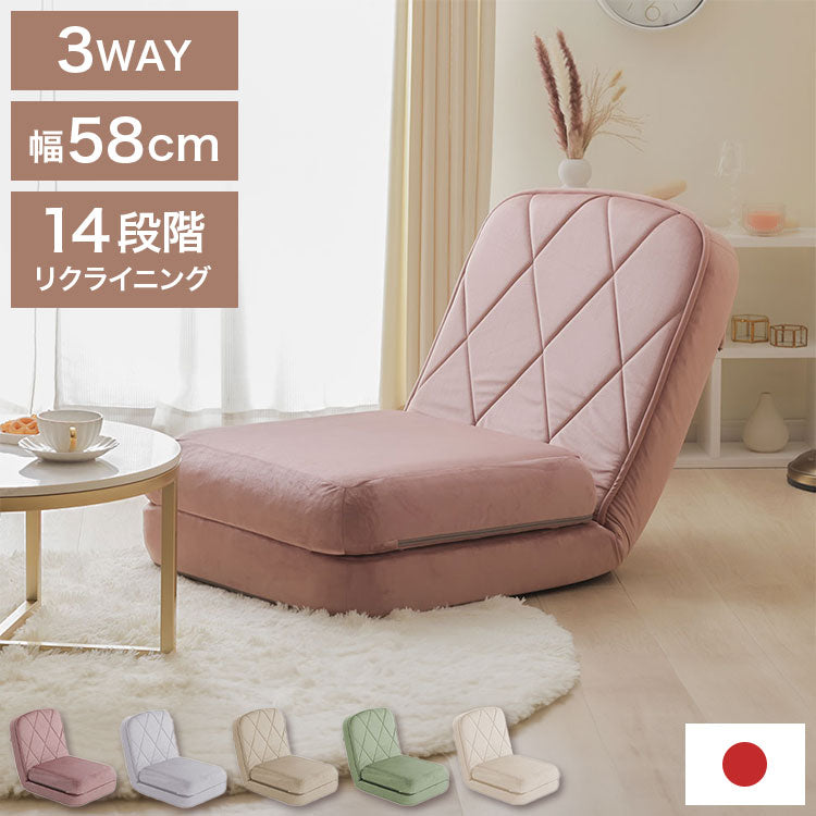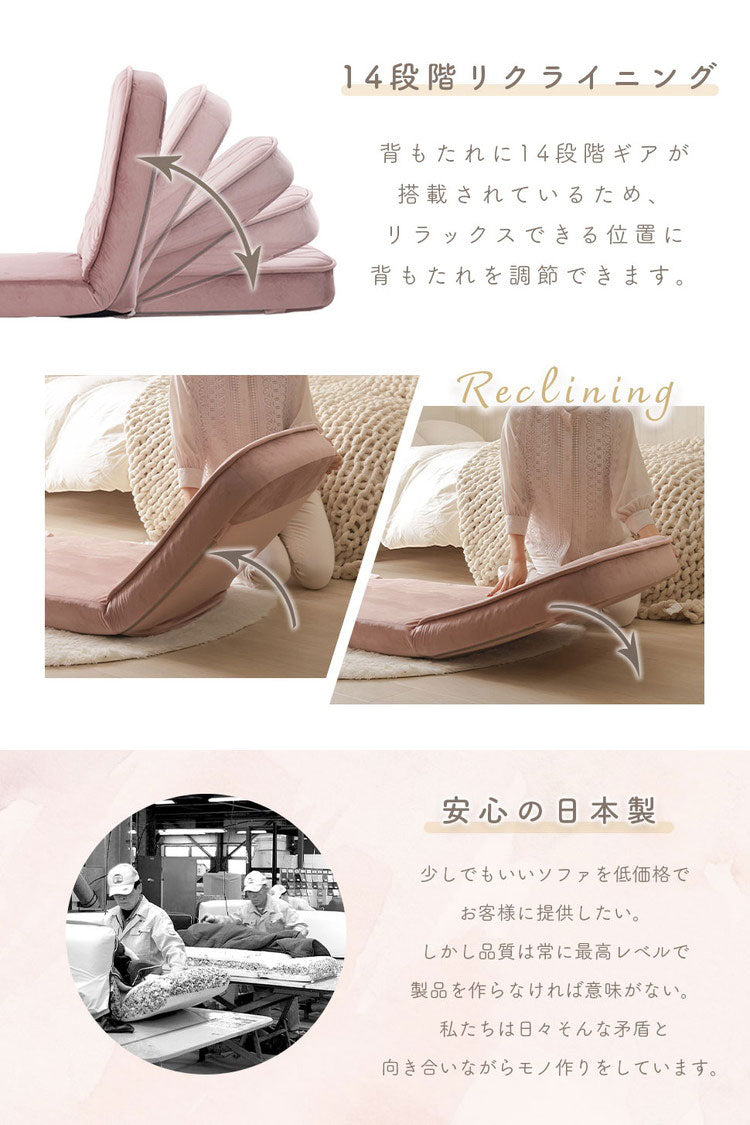 座椅子 ハイバック リクライニング 14段階 日本製 3WAY マルチ カウチソファ ソファベッド ローソファ 座面厚め おしゃれ かわいい ステッチ リビング ワンルーム 椅子 一人用ソファ 座いす(代引不可)
