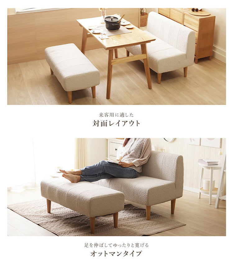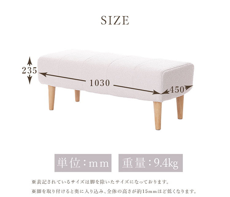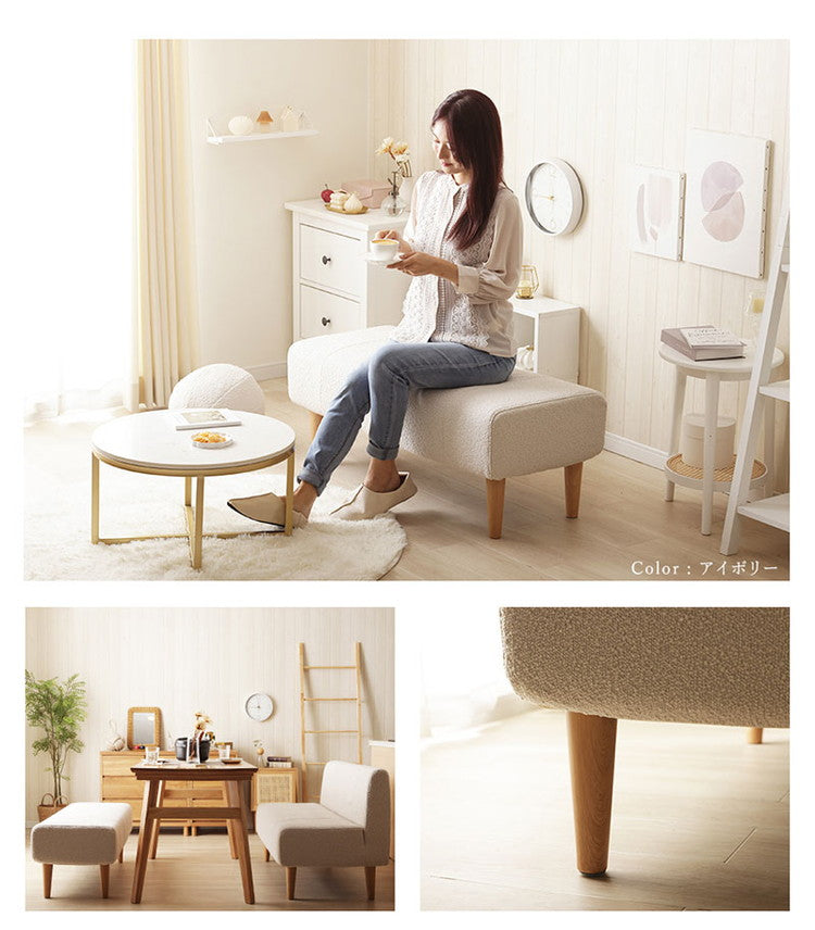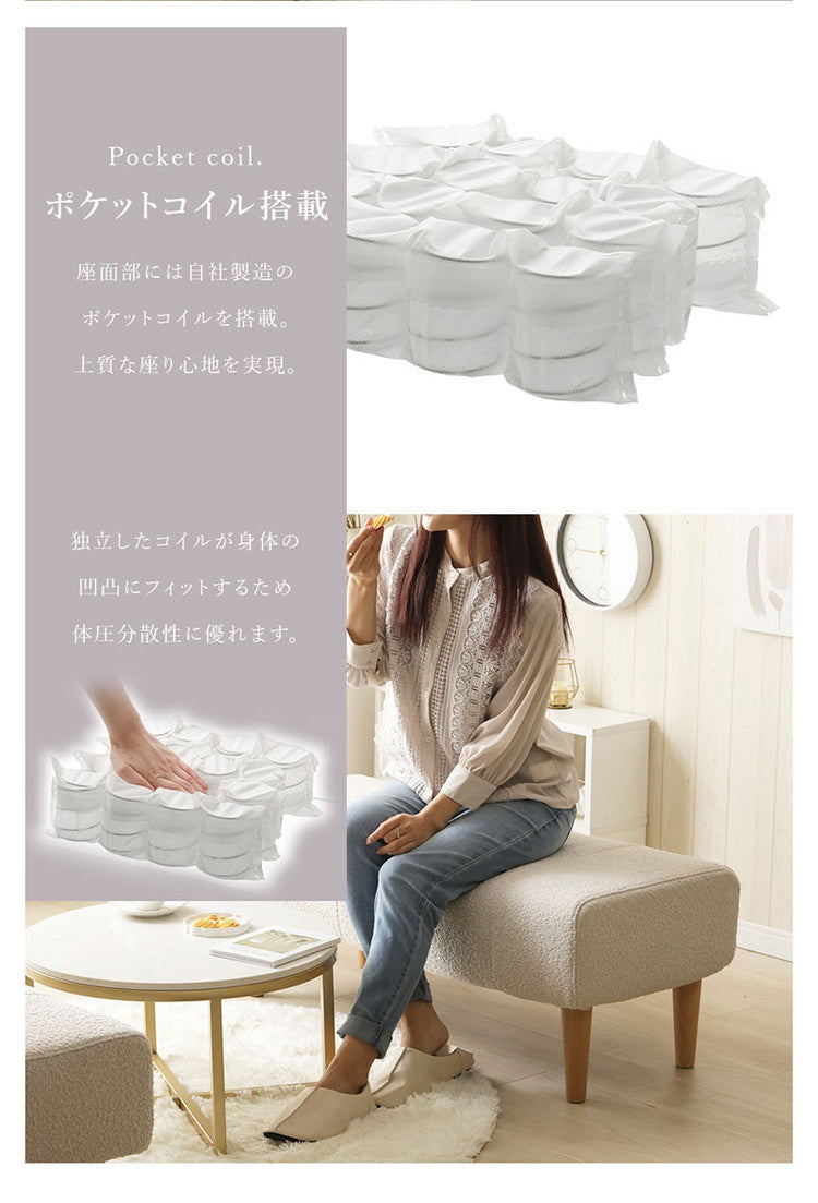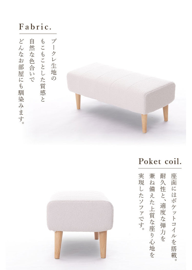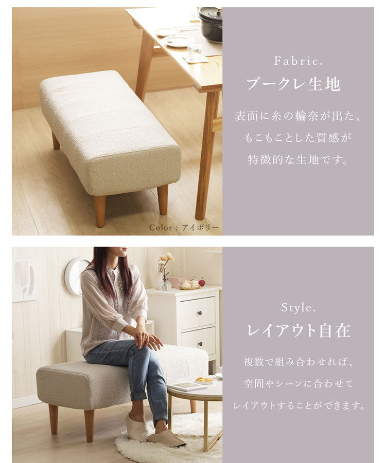 ダイニングソファ ベンチソファ ブークレ生地 二人掛けブークレ ソファ 肘掛けなし 背もたれなし 脚付 レイアウト自由 シンプル ふんわり おしゃれ ゆったり 2P 日本製 ベンチ ソファ ソファー(代引不可)