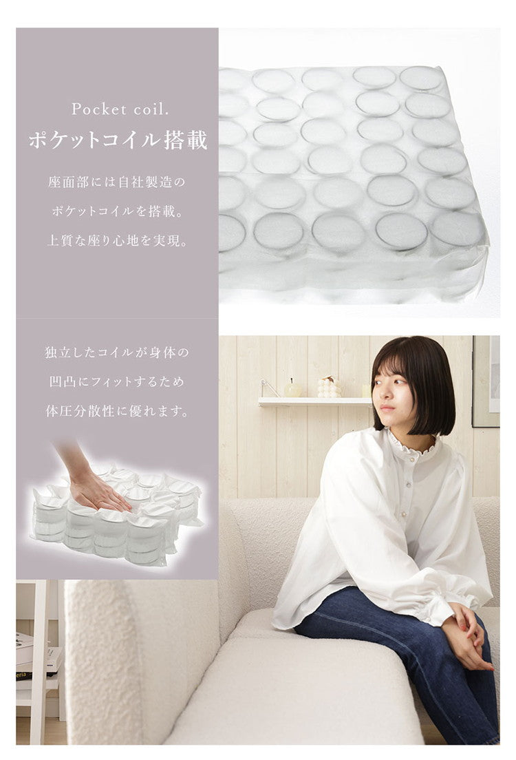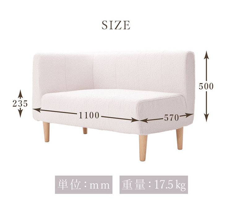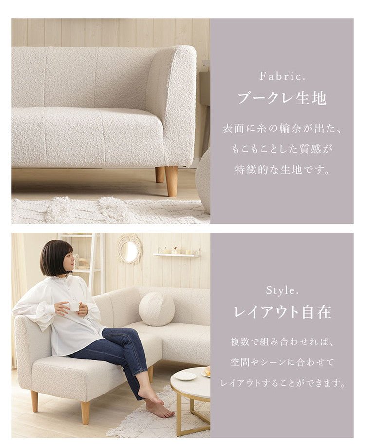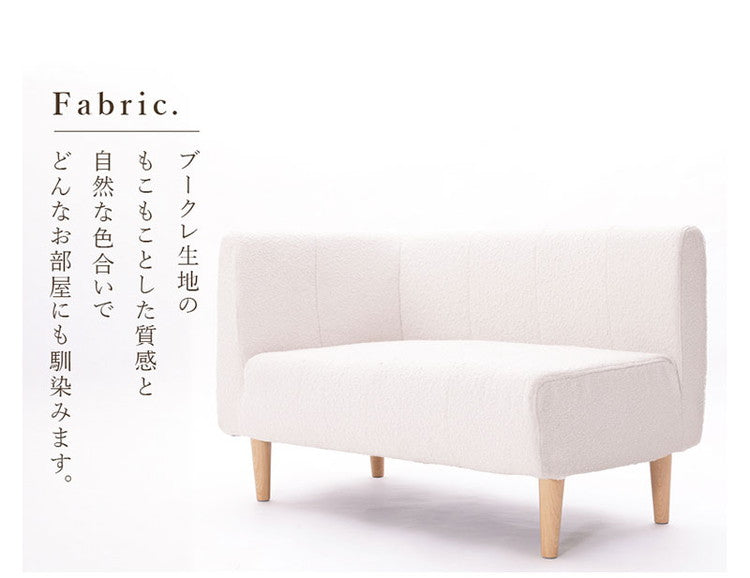 ダイニングソファ コーナーソファ ブークレ生地 日本製 二人掛けソファ 肘掛け ブークレ 背もたれ 脚付 レイアウト自由 シンプル 淡色 ふんわり おしゃれ ゆったり 2P 国産 ソファ ソファー(代引不可)