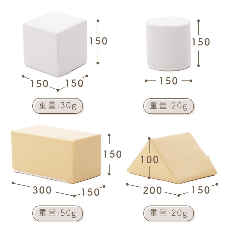 子どもの発想力をはぐくむ積み木クッションに、4種類のブロックがセットになったミニサイズが登場。