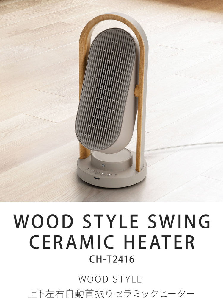 WOOD STYLE 上下左右自動首振り セラミックヒーター 電気ヒーター 人勧センサー ヒーター 首振り 角度調節 送風 スリム 一人暮らし おしゃれ 木目調 CH-T2416