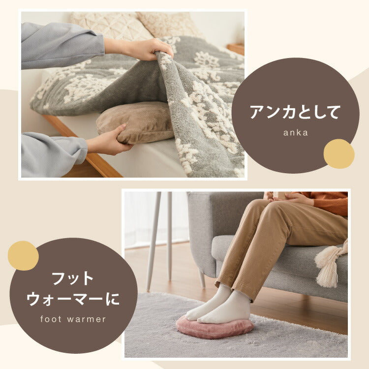 膝の上に乗せてカイロとして使ったり、布団の中でアンカとして使ったり、湯たんぽの上に足を乗せてコタツ代わりに足先を暖めたりすることも可能です。