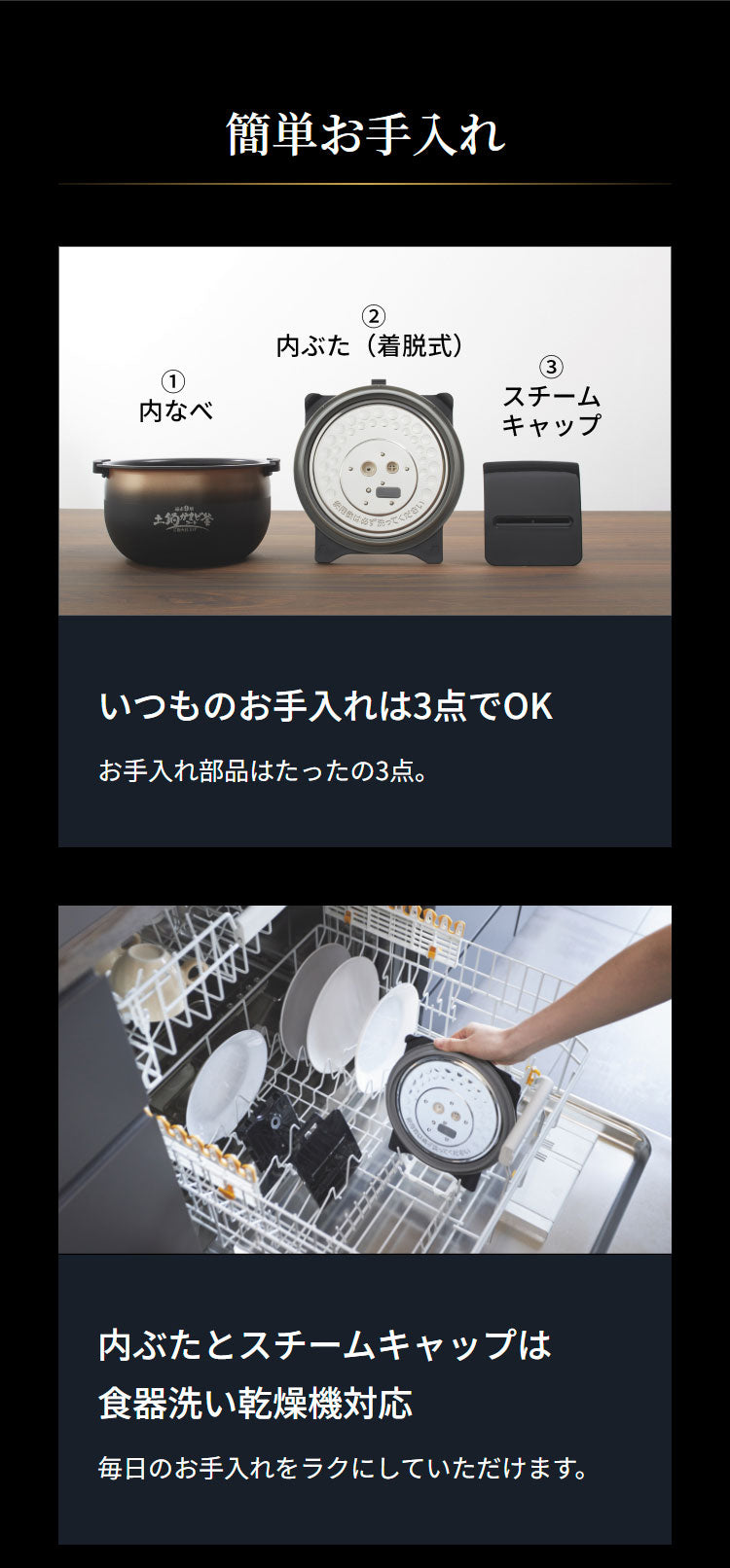 白米の炊飯及び保温米飯容量:0.09-1.0L、0.5-5.5合