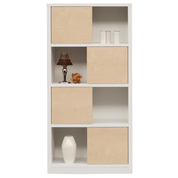 オープンシェルフ 収納棚 幅74cm ツートン ホワイト&ナチュラル 扉付き 日本製 国産 リビング収納 収納家具 インテリア家具 完成品 玄関渡し (代引不可)