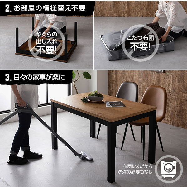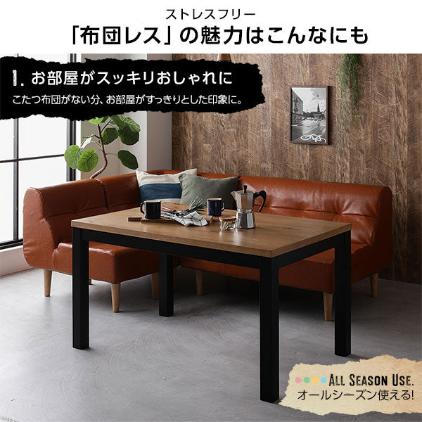 こたつテーブル 約幅120cm 長方形 木製脚付き 布団不要 高さ調節可能 UV塗装 速暖 ダイニングテーブル リビング【代引不可】