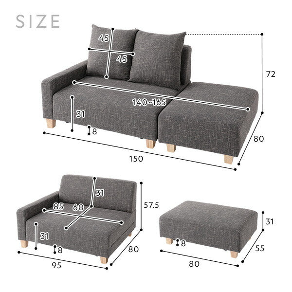 1.5人掛け:幅95cm×奥行80cm×高さ57.5cm(脚高さ:8cm)