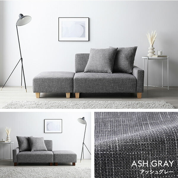 ソファセット コンパクトカウチ 〔 1.5人掛け オットマン アッシュグレー テーブルトレイ ヴィンテージナチュラル 脚:ブラウン 〕 コンパクト ローソファ フロアソファ ソファーセット ソファー ソファ スツール テーブル トレイ インテリア家具 リビング家具 組立品